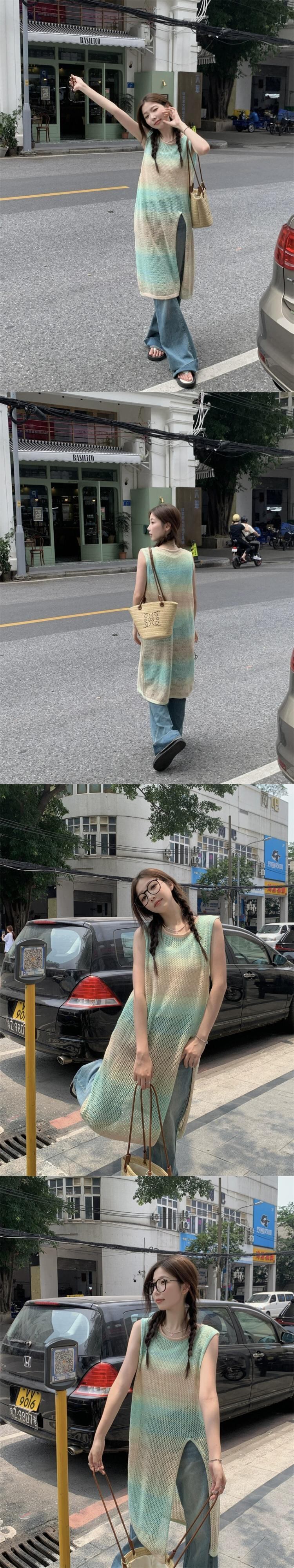 怠惰なスタイルの中空ニットベスト婦人服夏 2023 新しいデザインセンス中空ノースリーブスリットトップ サマー 夏物 092196789068895
