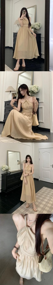 フレンチスタイルの優しい風ホルターネックタイドレスレディース2023年夏新作スリムで薄いアウターミドル丈スカート サマー 夏物 0921983170049367