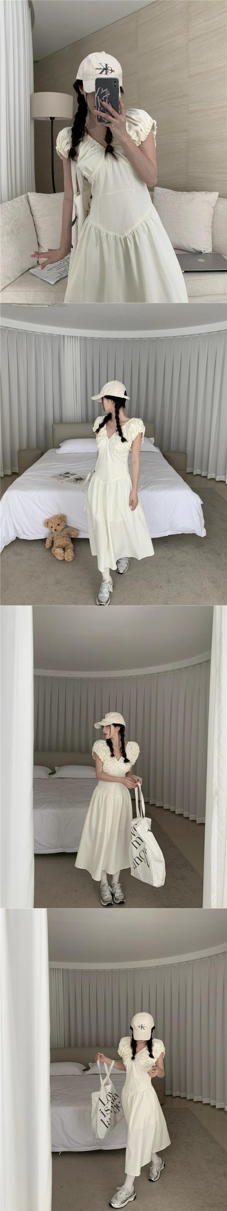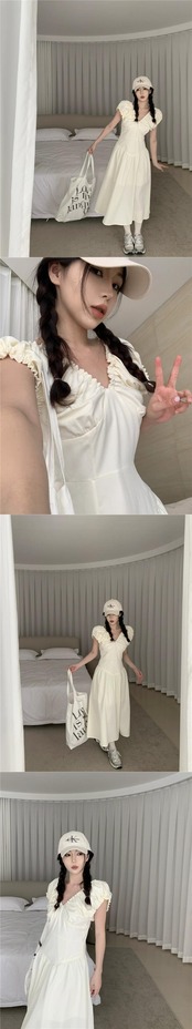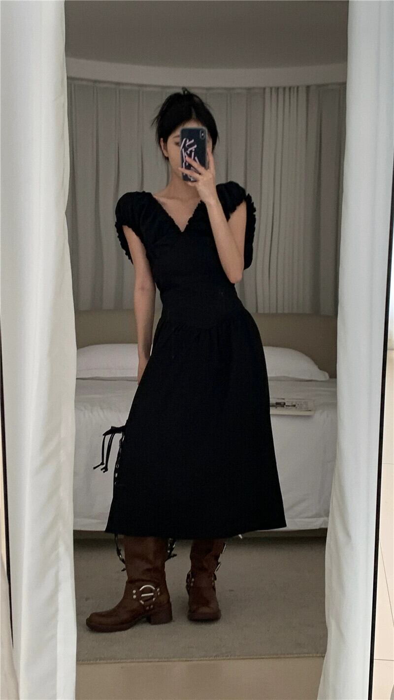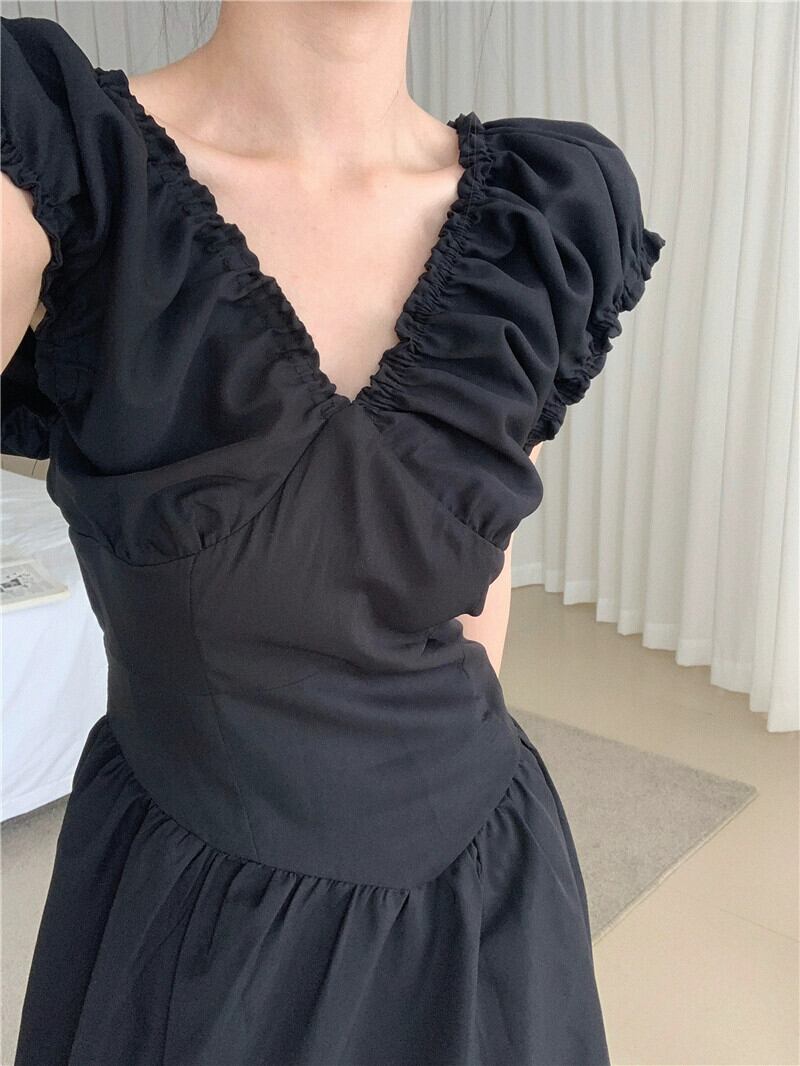 フランスのデザインセンスニッチ V ネックウエストドレス女性の 2023 夏の新しいオールマッチ薄いミドル丈スカート サマー 夏物 Vネック 0921960748606693