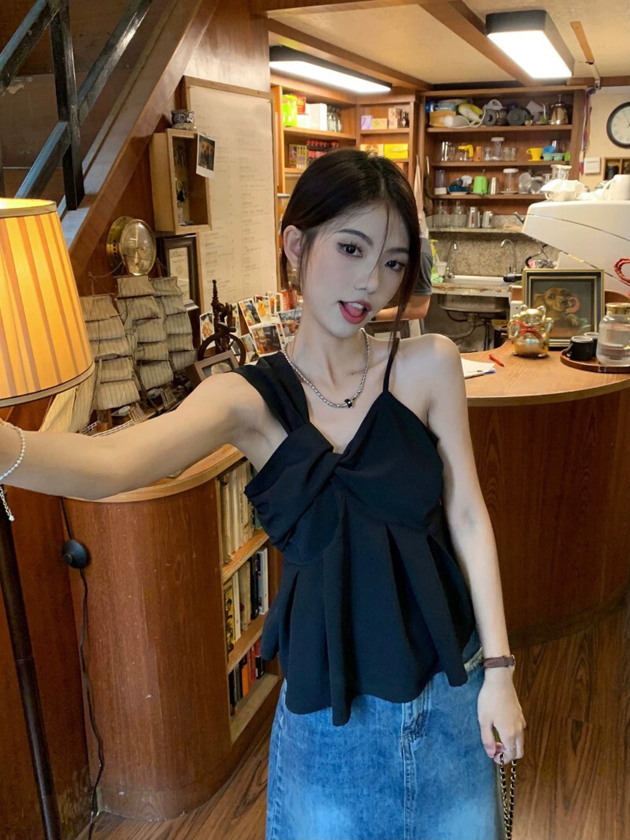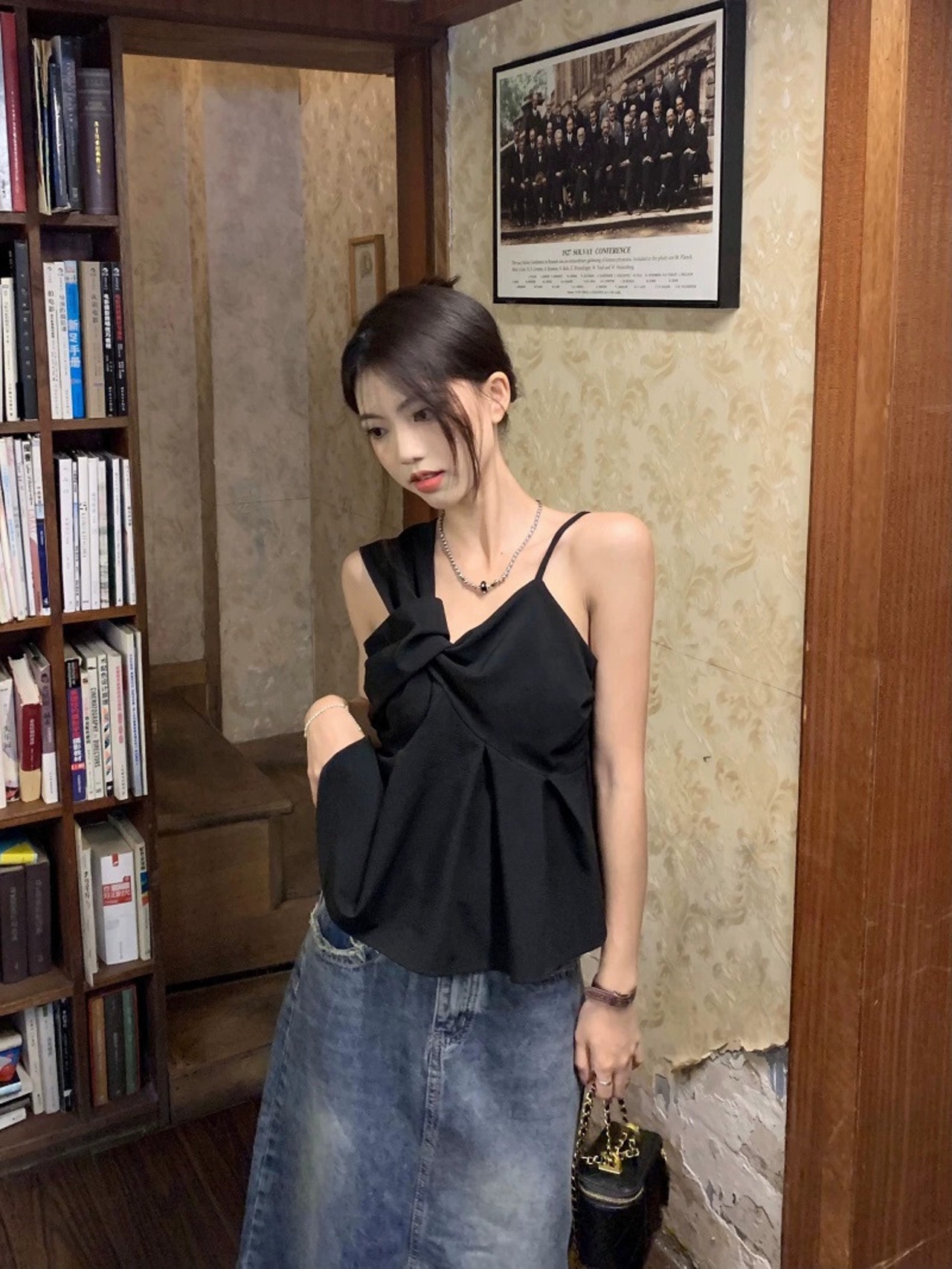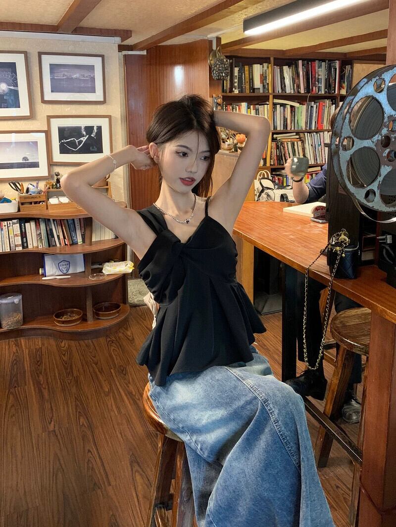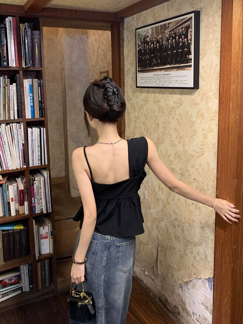 センスニッチ非対称キャミソールレディース2023夏新作ハイエンド気質ブラックショートトップ サマー 夏物 0921912558421064