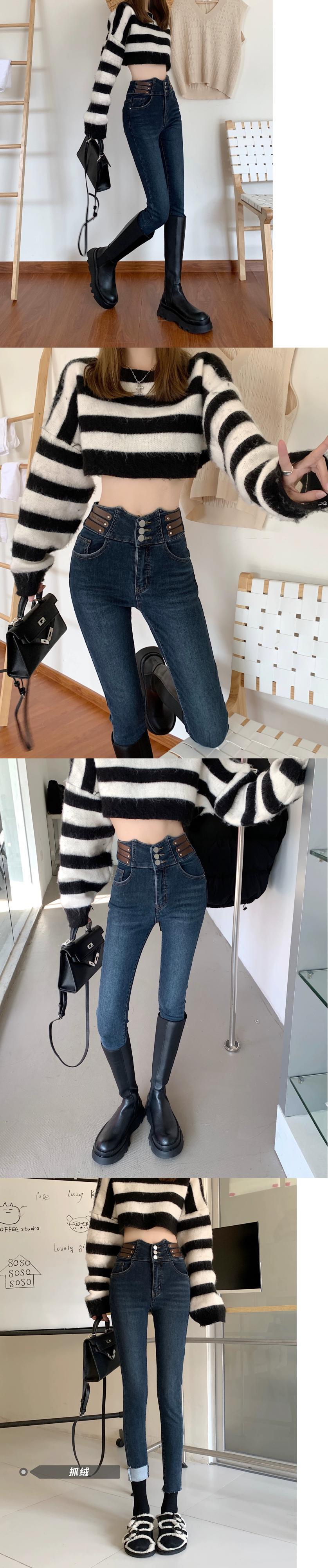 ウエスト薄いストレッチプラスベルベットジーンズレディース春秋2023新しいオールマッチタイトペンシルパンツトレンディ スプリング 春物 オータム 秋物 0921955837841231