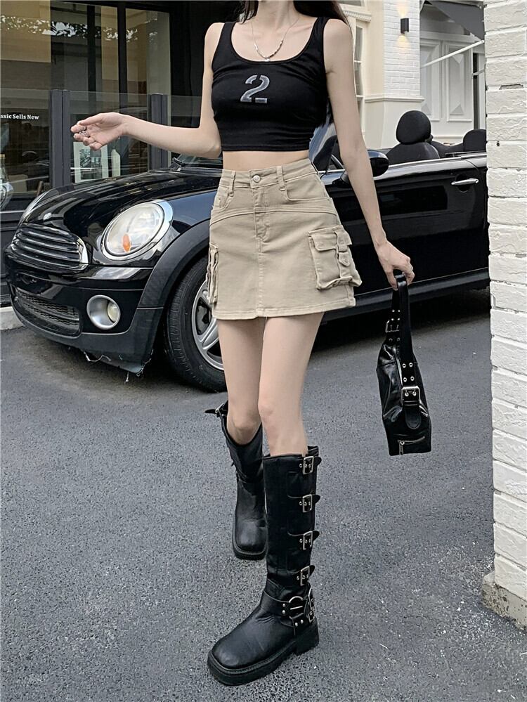 ウエスト弾性 a ラインジーンズスカート女性の夏スリムバッグヒップスカート小さなカーキツーリングスカート エラスティック 伸縮 サマー 夏物 Aライン 0921990043652882