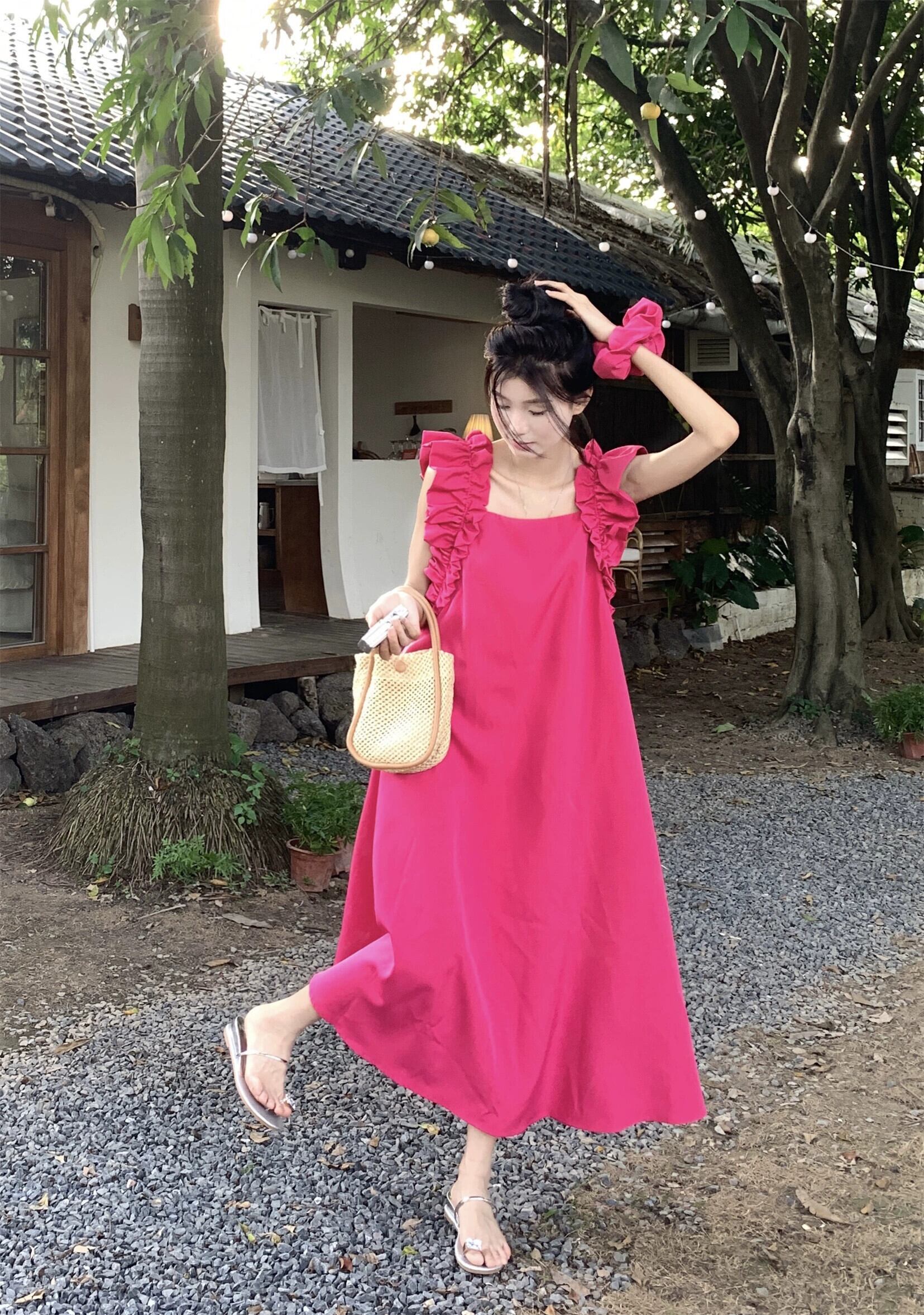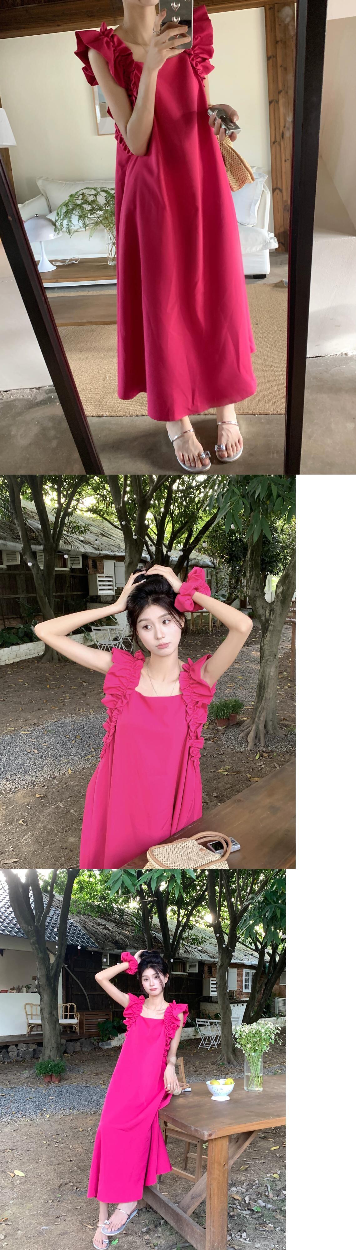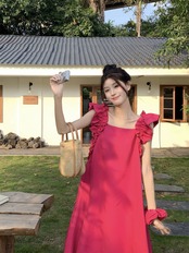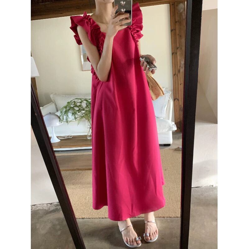 スタイルオールマッチ木耳ドレス年齢軽減女性の夏の 2023 新しい優しい風ルーズスリムミドル丈スカート サマー 夏物 0921988226760063