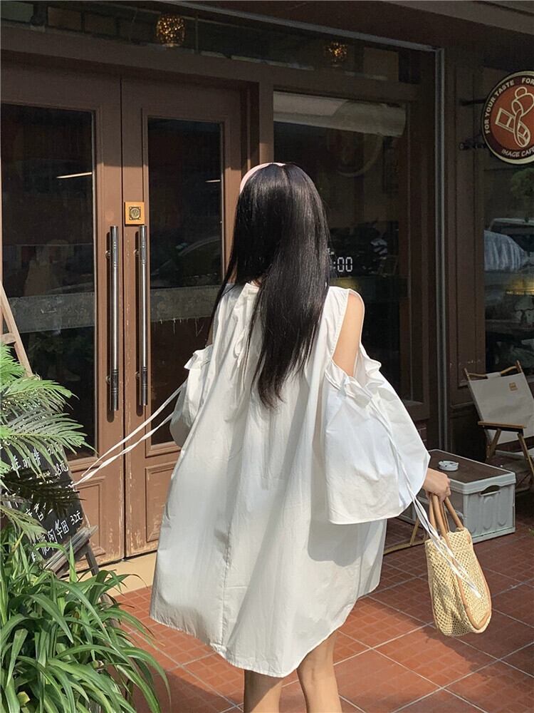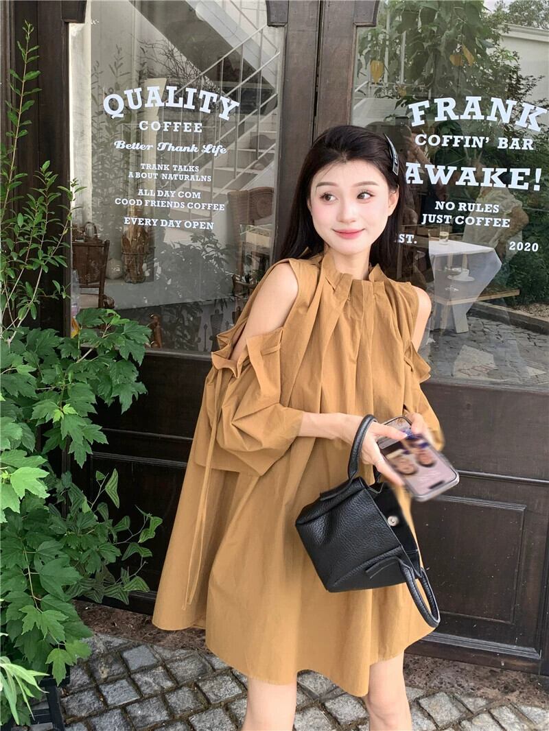 センスストラップレスストラップレス長袖ドレス女性の夏の 2023 新しいオールマッチルーズスリムショートスカート潮 ロング サマー 夏物 0921918139625257