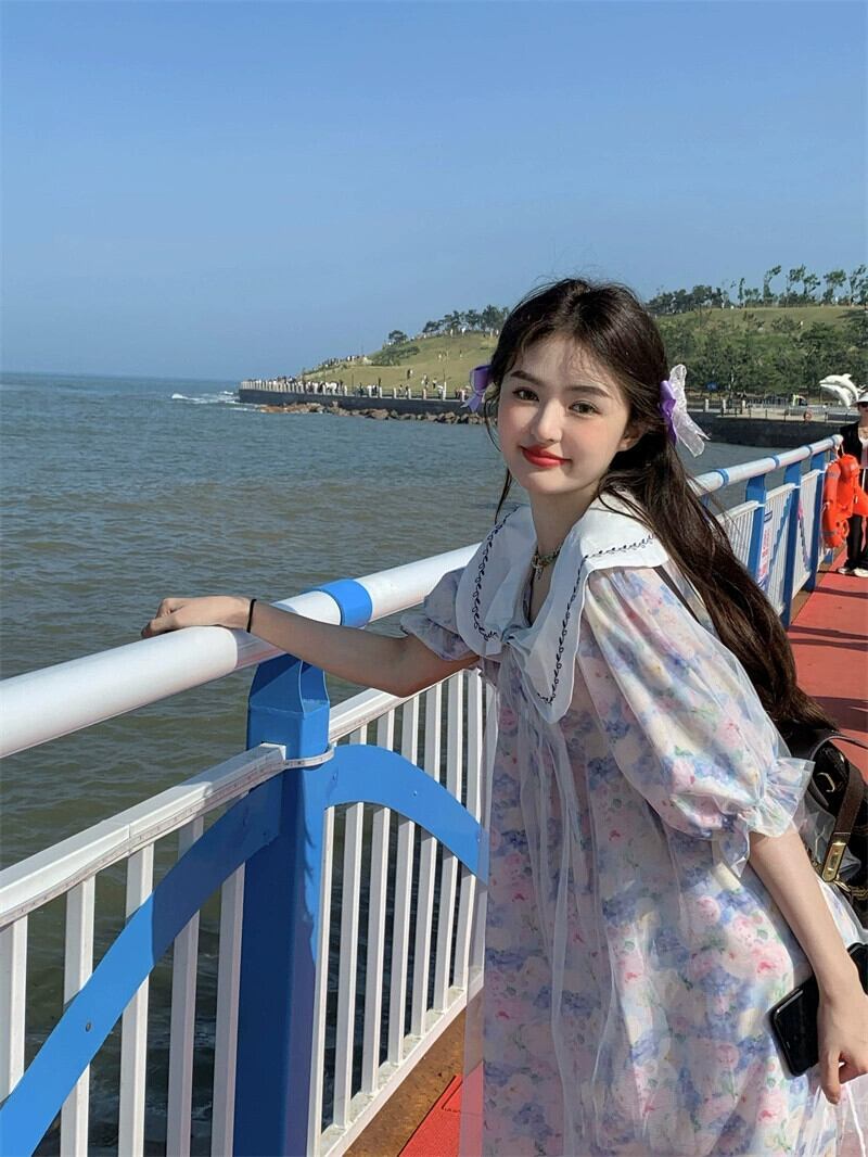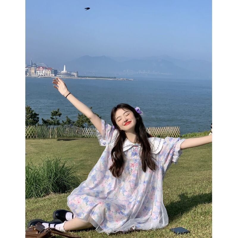 甘い重工業刺繍人形襟ドレス女性の夏の二層メッシュスプライシング花柄ルーズショートスカート 大人ガーリー スウィート キュート カジュアル サマー 夏物 0921963432325947