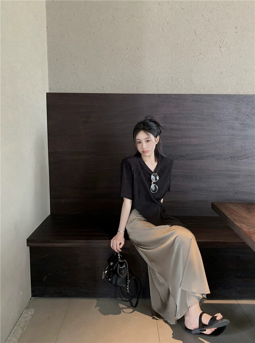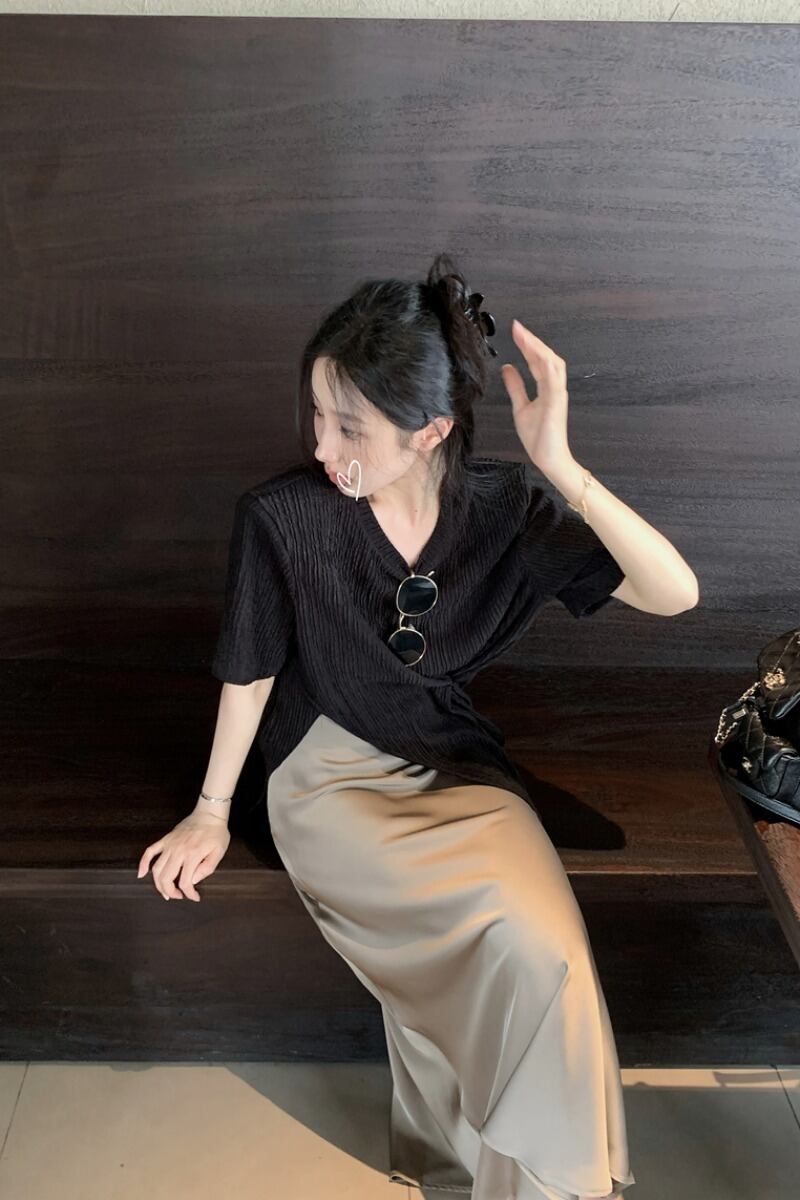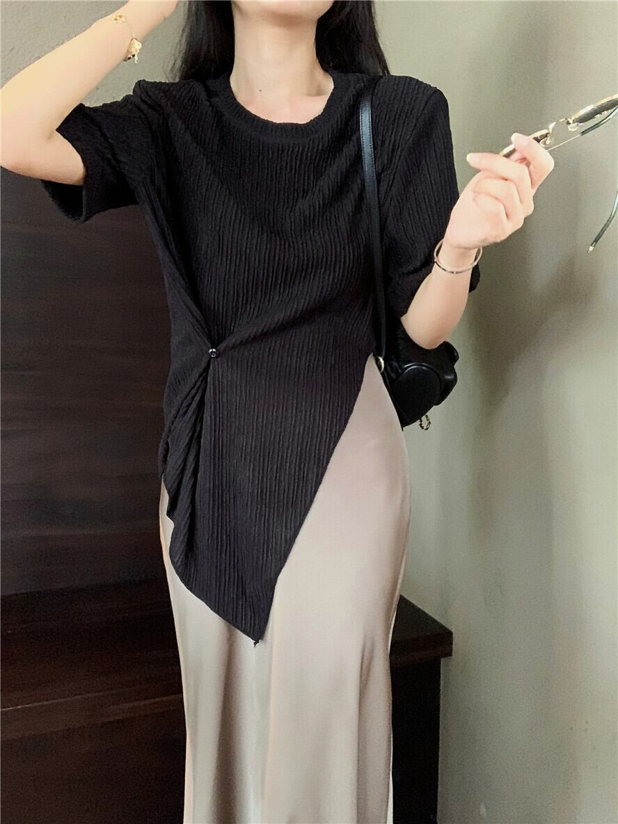 ロイヤルシスタースタイルの気質ファッションスーツスカート女性の夏の2023新しいデザインセンススリットTシャツスカート2点セット サマー 夏物 0921924437731363