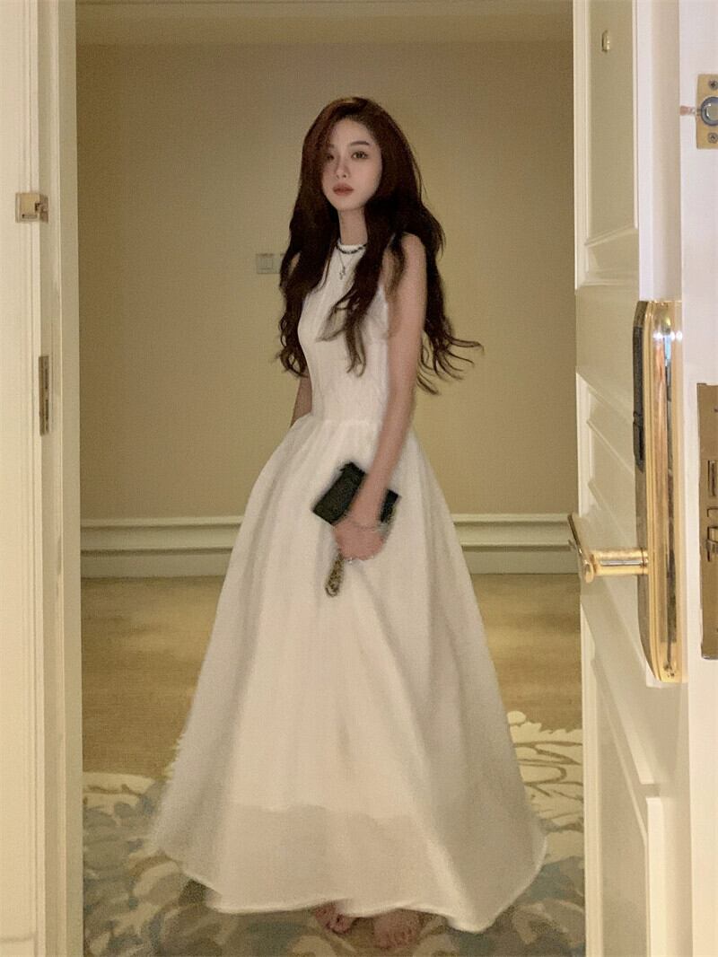 バージョンステッチテクスチャーセンスホワイトベストドレス女性の夏の2023新しいスリムで薄いアウターウェアミッドレングススカート サマー 夏物 0921930621086054
