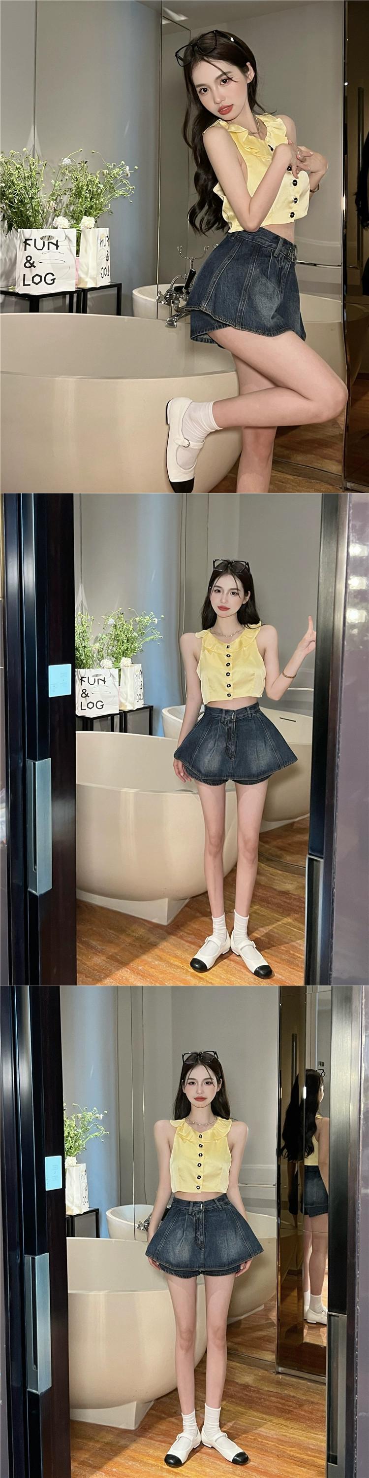 センスハイウエスト薄いデニムスカートレディース夏 2023 新しい気質オールマッチアウターウェアショートスカートトレンディ ハイウェスト サマー 夏物 0921988596560695