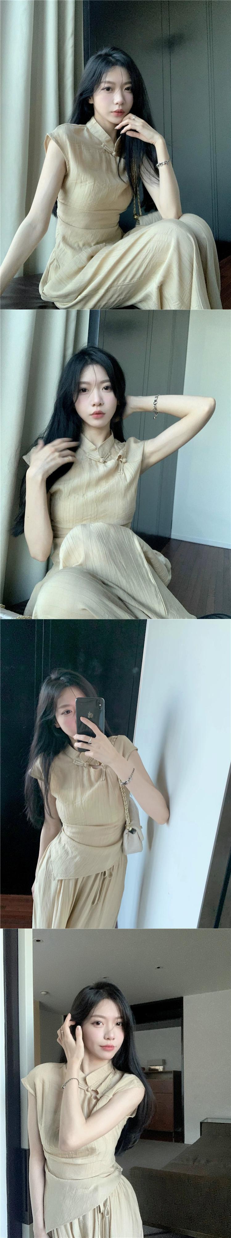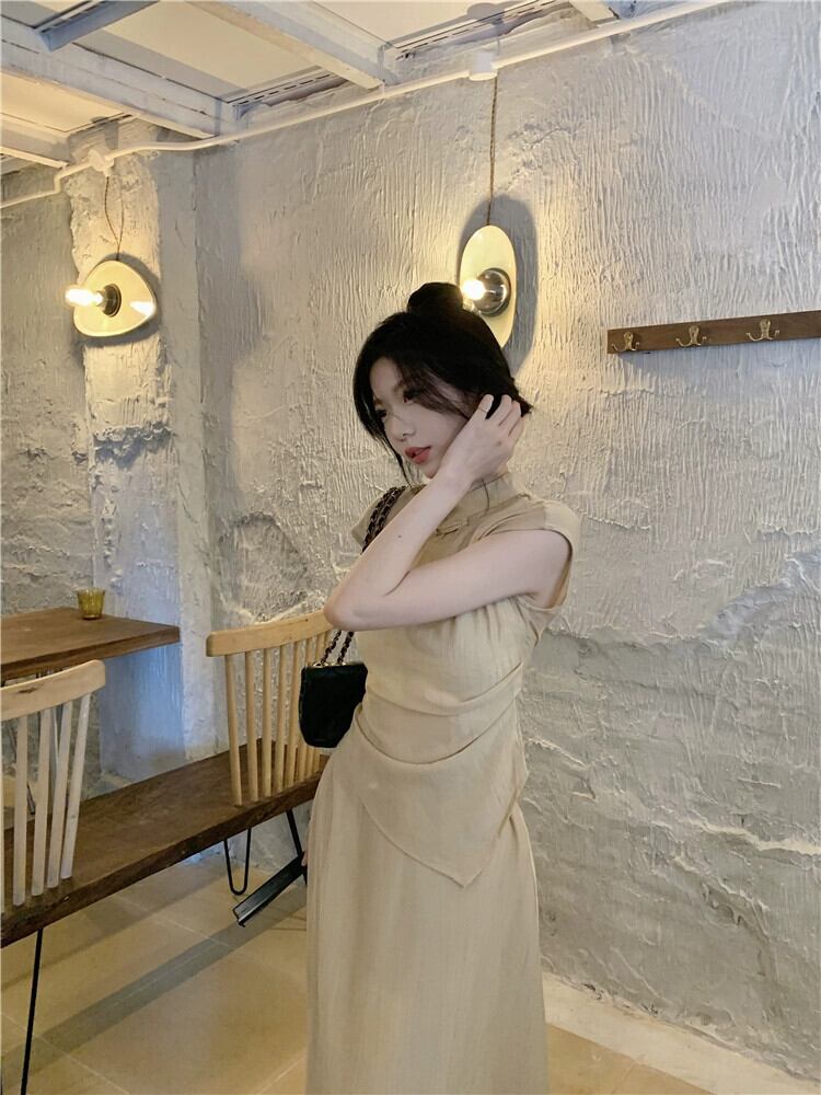 中国風涼しげなスーツスカートレディース2023夏新作スタンドカラーボタンダウンシャツスカートロングスカート2点セット サマー 夏物 0921996236869286