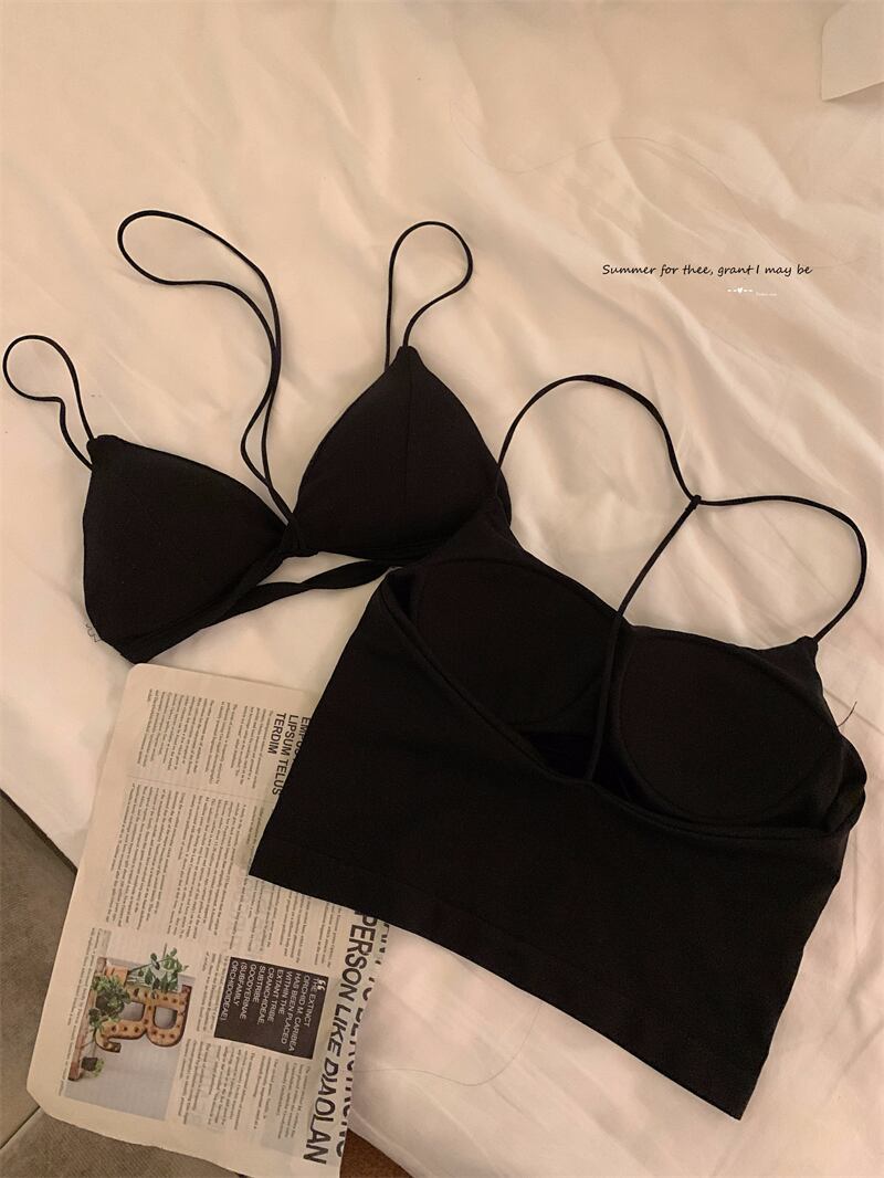 アメリカンセクシーディープVキャミソール下着レディース夏黒胸パッド付き美しい背中付きショートアウタートップ ブラック サマー 夏物 0921993687508788