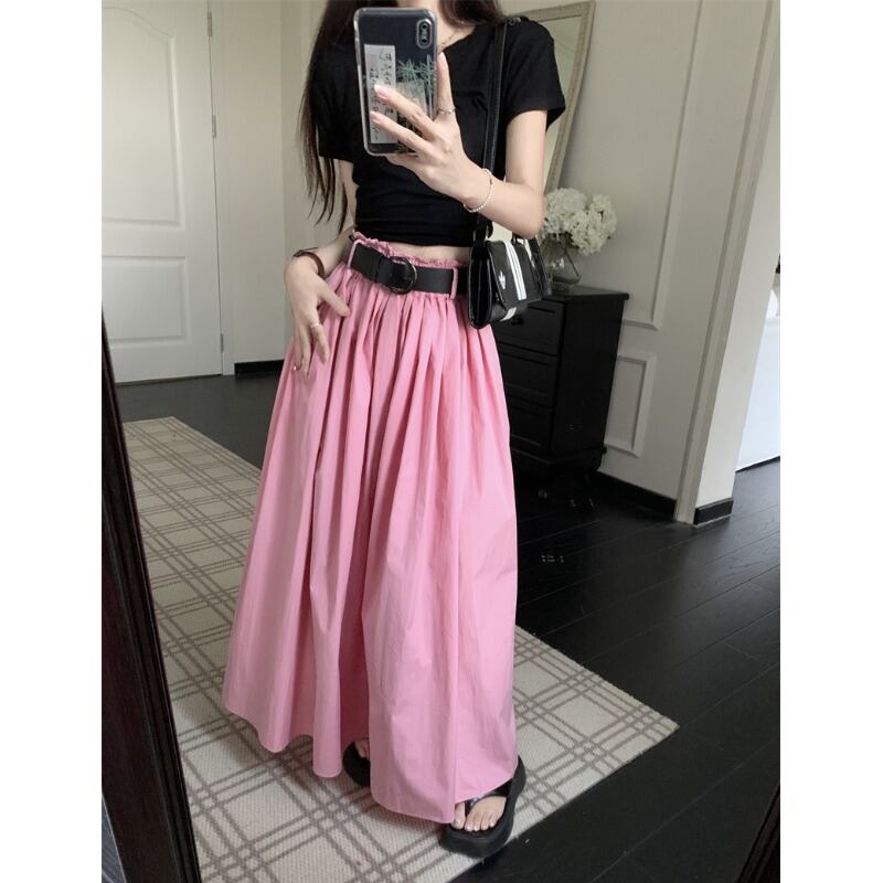 スイート スパイス ガールズ ピンク スカート レディース 夏オールマッチ ウエスト スリム ロング スカート ルーズ ヒップ ヒップ A ライン スカート 大人ガーリー スウィート キュート カジュアル サマー 夏物 Aライン 0921976360242164