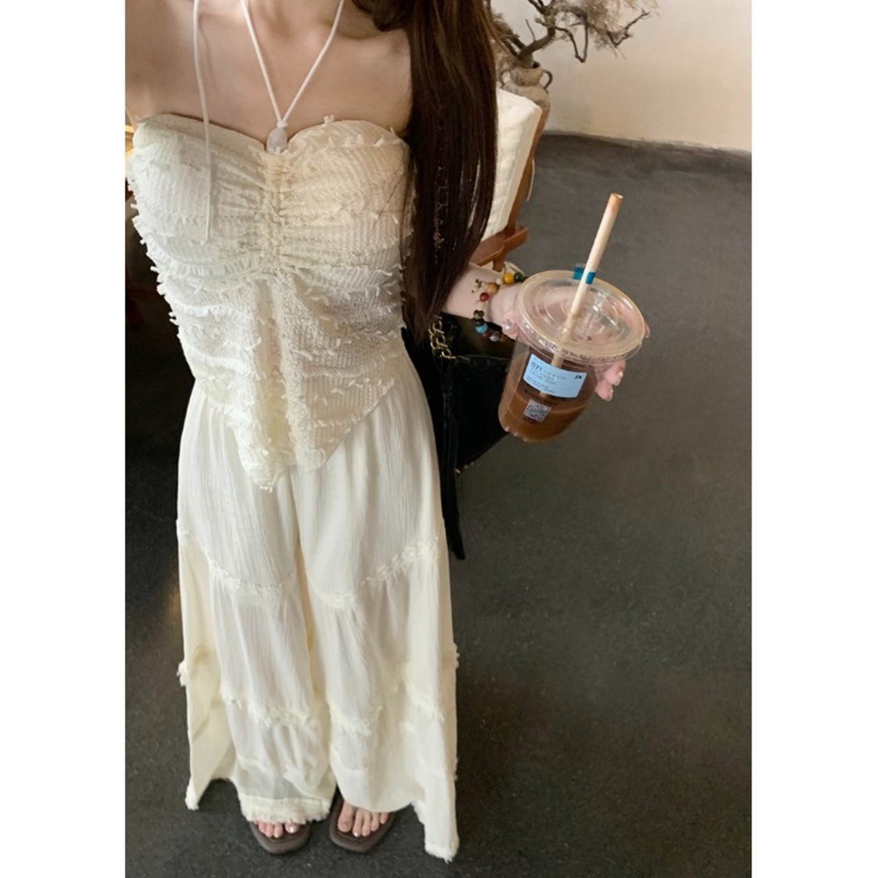 フレンチテルスプライシングカジュアルパンツ 妖精パンツ 夏休みスタイル ゆったりドレープ ワイドレッグ ひらひら袴パンツ サマー 夏物 0921941614931608