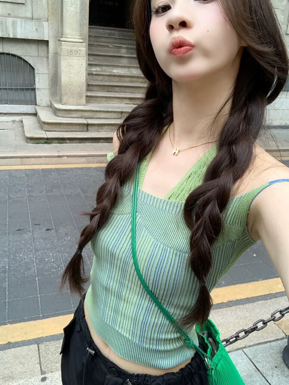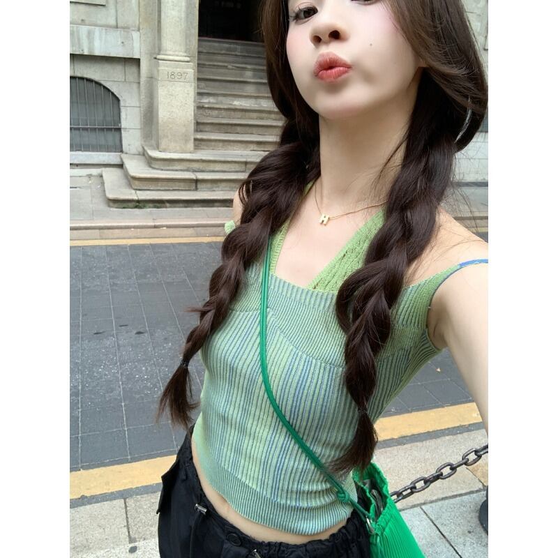 アメリカの恋人キャミソール女性の夏 2023 新しいデザインセンスカラーコントラストスリムフィットノースリーブニットトップ 大人ガーリー スウィート キュート カジュアル サマー 夏物 0921992957848744