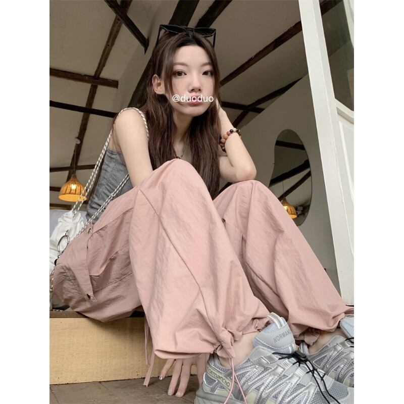 ストリートスタイル無地ファッションカジュアルパンツ女性の夏の 2023 新しいデザインセンスハイウエストルーズスリムオーバーオールオーバーオールパンツ ハイウェスト サマー 夏物 ソリッドカラー 0921965514422022