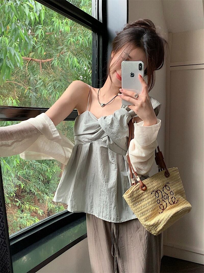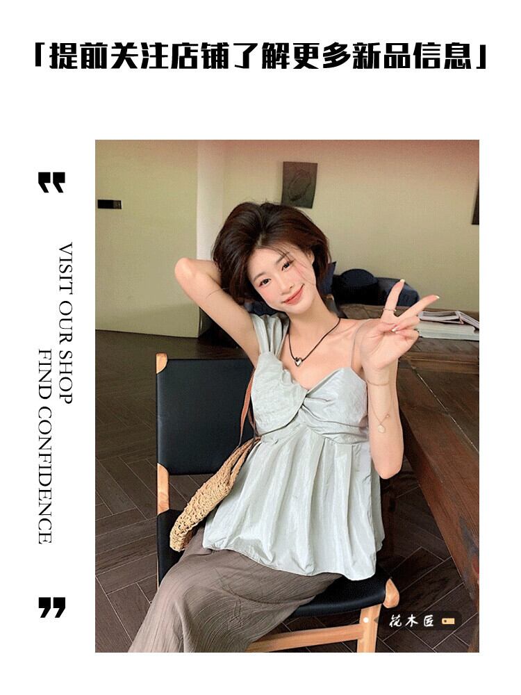 フレンチスイートデザインセンスニッチキャミソールレディース2023年夏新作無地オールマッチシックなウエストトップ 大人ガーリー スウィート キュート カジュアル サマー 夏物 ソリッドカラー 0921912646585913