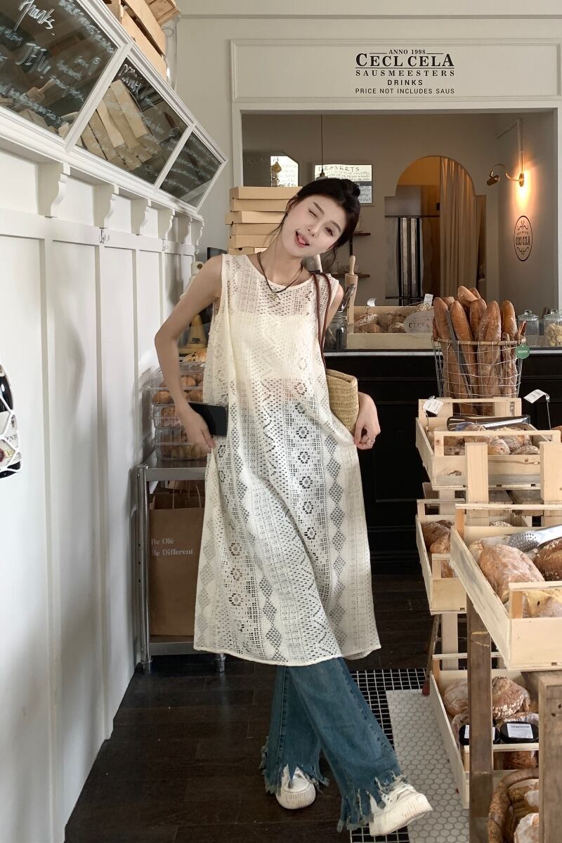 センスニッチレース中空ベストドレス女性の夏の 2023 新しいスリムスリムアウターウェアミッドレングススカート サマー 夏物 0921961280287321