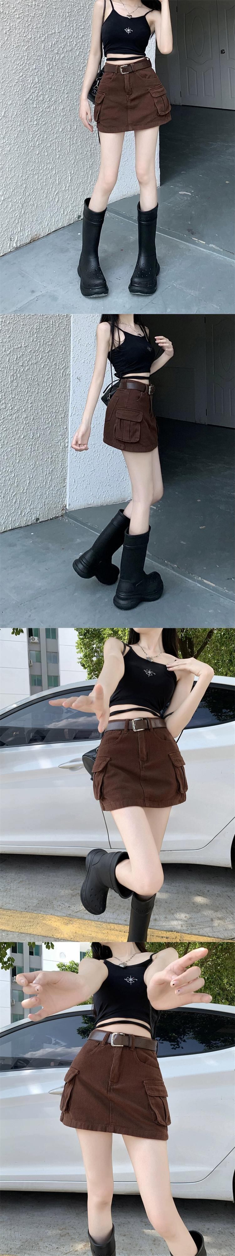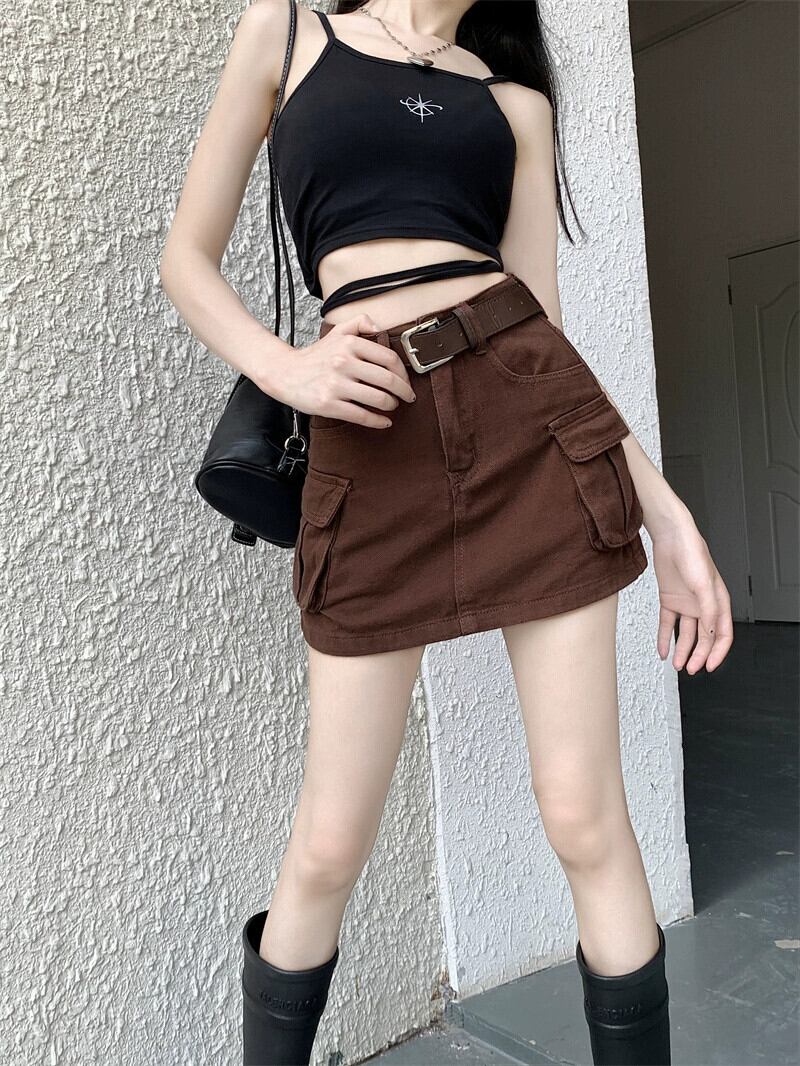 レトロブラウンツーリングデニムスカート女性の夏の 2023 新しいハイウエスト薄いスカート a ラインスカート ハイウェスト サマー 夏物 Aライン 0921939991313355