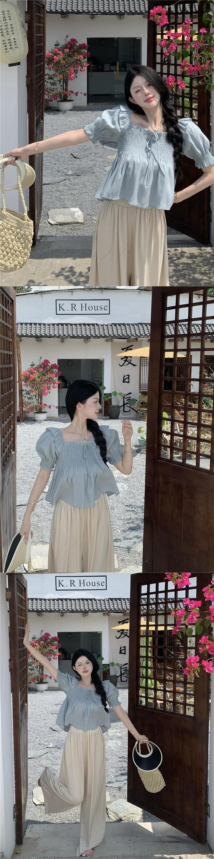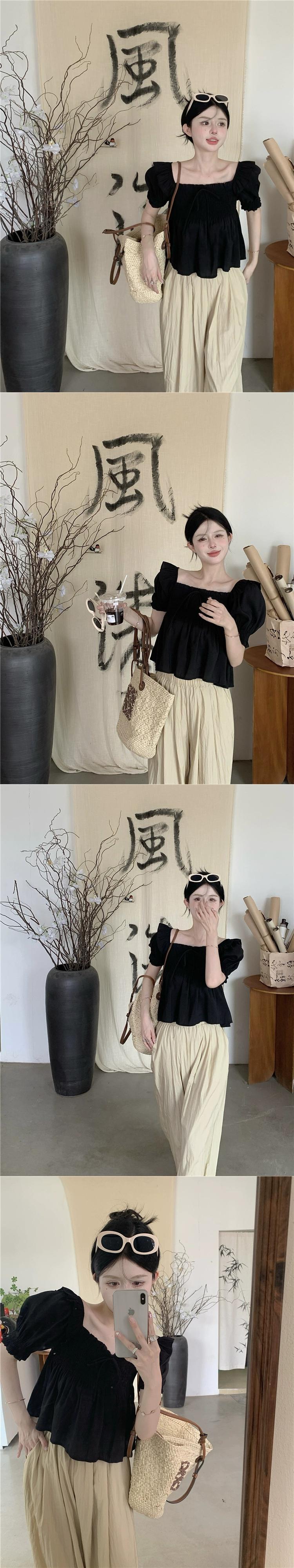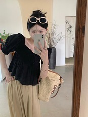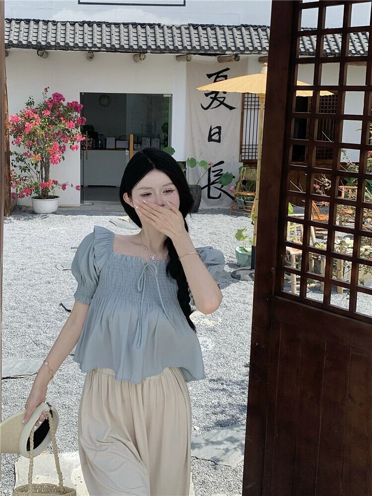 フレンチプリーツスクエアカラー半袖シャツレディース2023年夏新作甘くて年齢を軽減するパフスリーブシャツニッチトップ 大人ガーリー スウィート キュート カジュアル サマー 夏物 スクウェア 0921940150496116