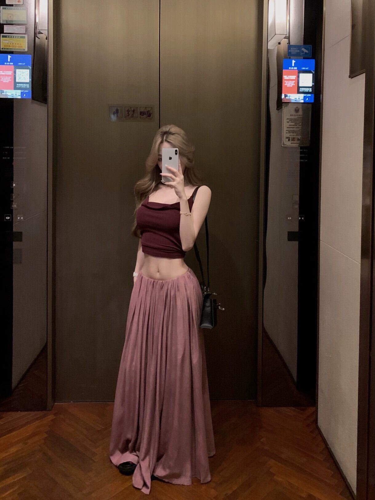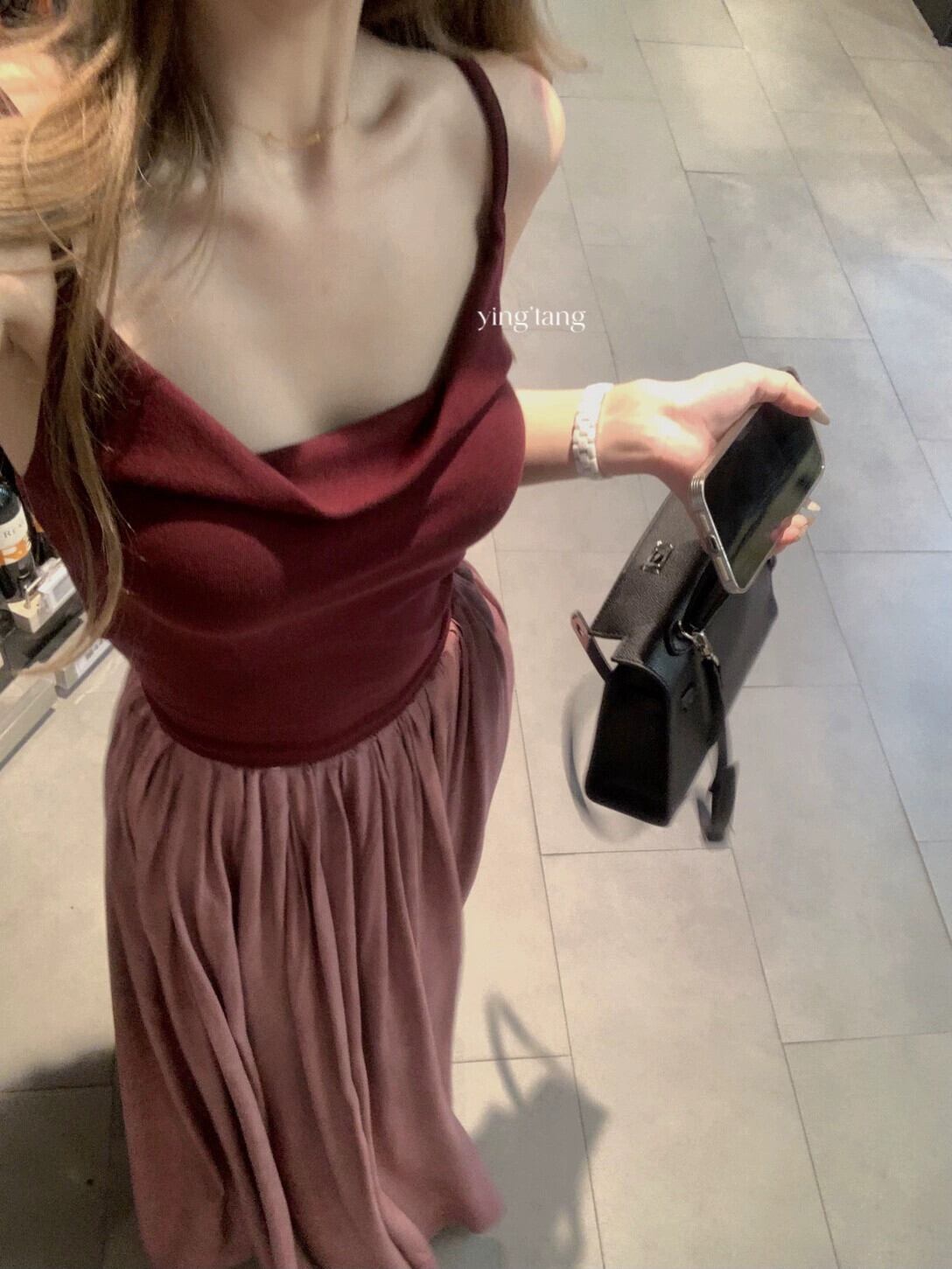 セクシーな風ファッションスーツ女性の夏 2023 新しい赤いスイングカラーキャミソールハイウエストスカート 2 点セット ハイウェスト レッド サマー 夏物 092199012374009