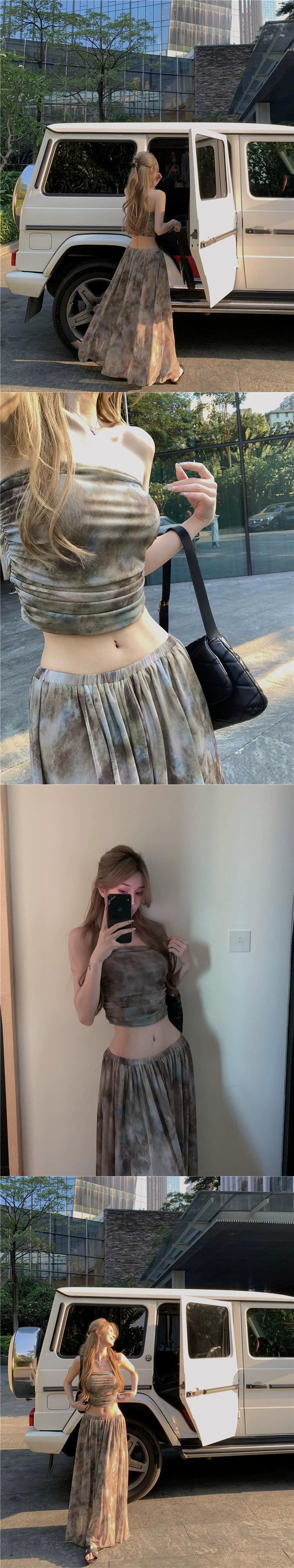 レトロハイエンド絞り染めファッションスーツ女性の夏の 2023 新しいチューブトップベストハイウエストスカート 2 点セット ハイウェスト サマー 夏物 0921923296378713