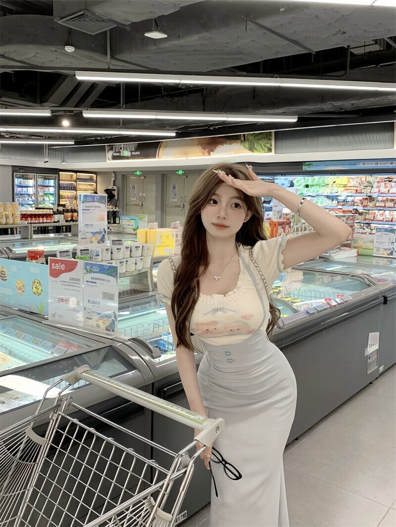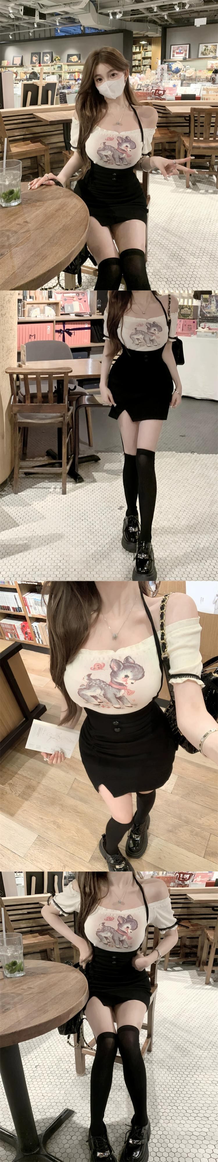 甘い風年齢削減スーツ女性の夏 2023 新しい漫画の印刷半袖トップぶら下げネックバッグヒップスカート 2 点セット 大人ガーリー スウィート キュート カジュアル サマー 夏物 0921971043987260