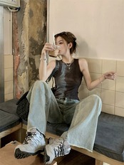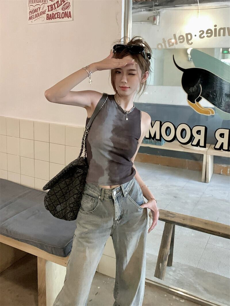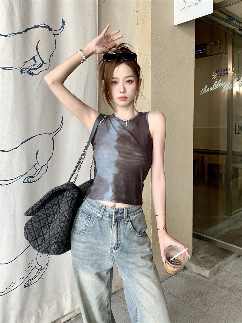 ホットセクシーなメッシュ汚れたノースリーブベスト女性の夏 2023 新しいデザインセンスショートセクションスリムスリムトップ サマー 夏物 092198442540570