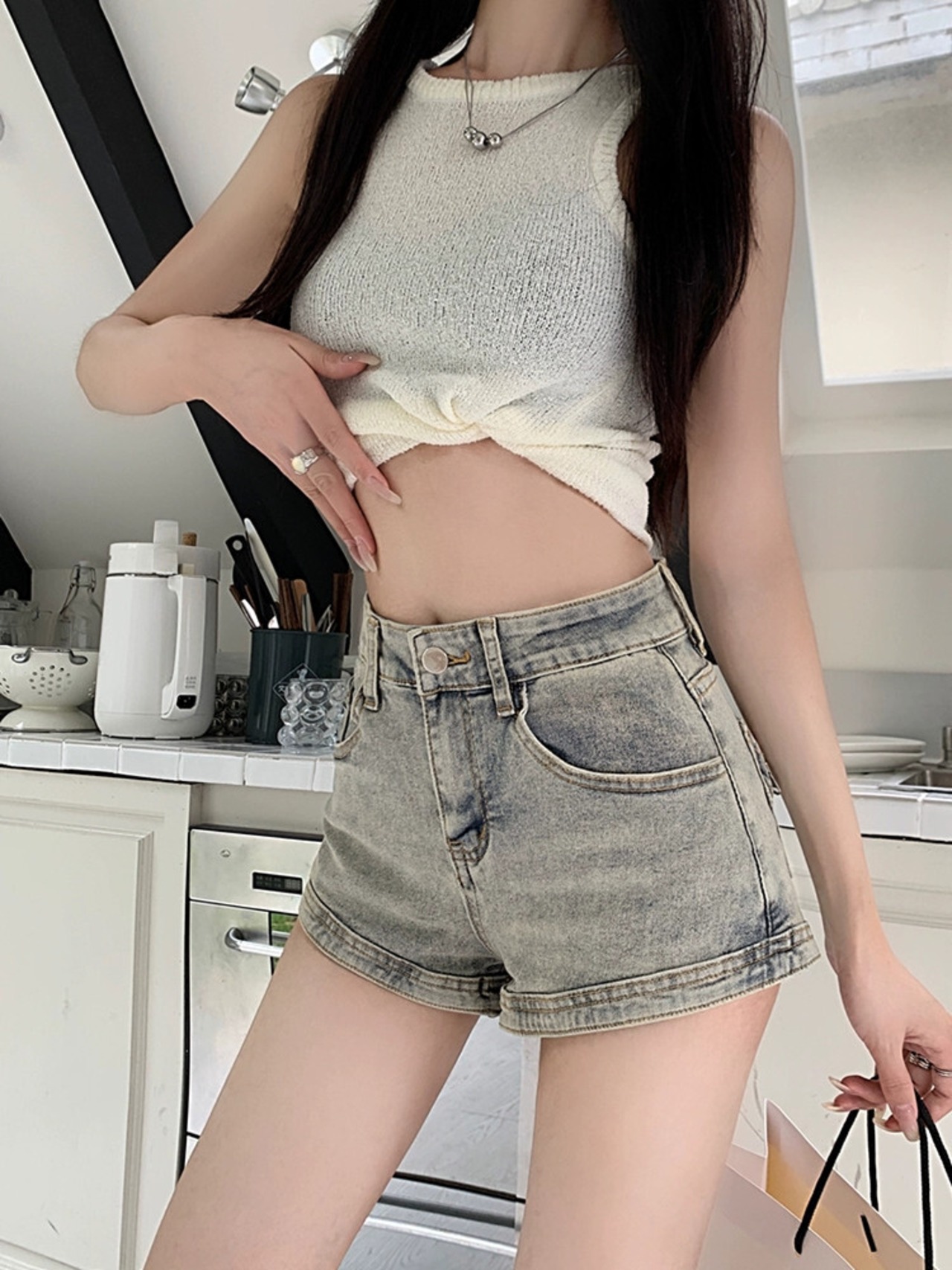 アメリカンレトロハイウエストジーンズレディース2023年夏新スタイルスリムフィットスリムストレートショートパンツパンツ サマー 夏物 ショーツ ブルマー 092191889327922