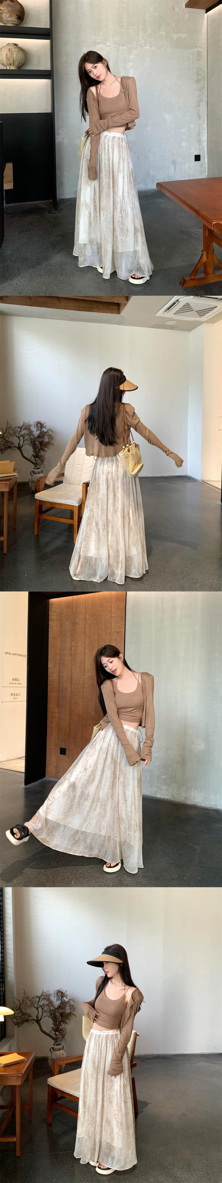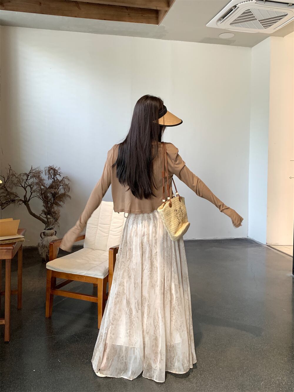 レトロな新中国風プリントハイウエストスカート女性の夏のシフォンロングスカートデザインセンスタイアップビッグスイング A ラインスカート サマー 夏物 Aライン 0921951947354246