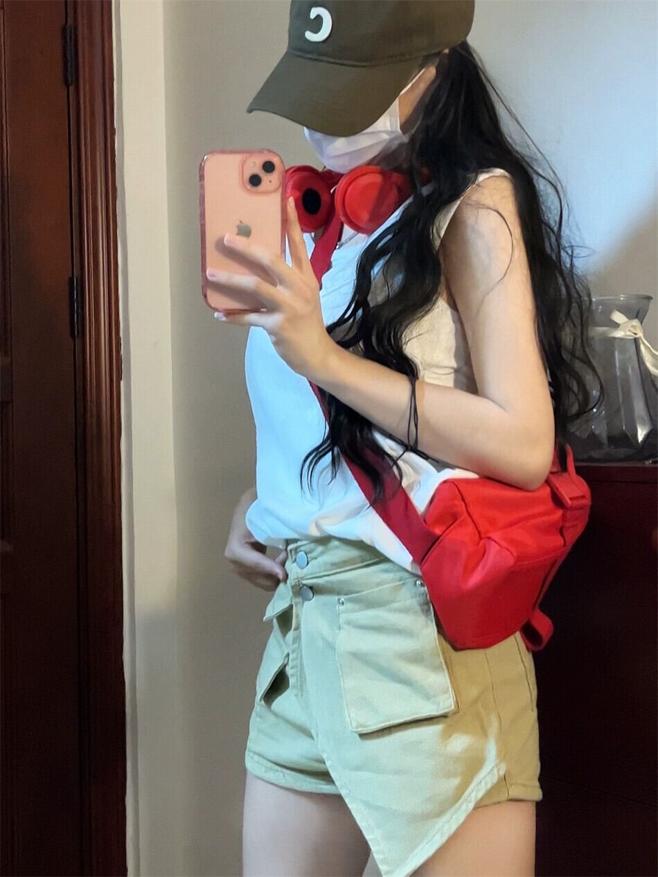 センスニッチファッションスーツ女性 2023 夏の新しいベストトップ不規則なデニムショーツ 2 点セット サマー 夏物 ブルマー 0921964338300608