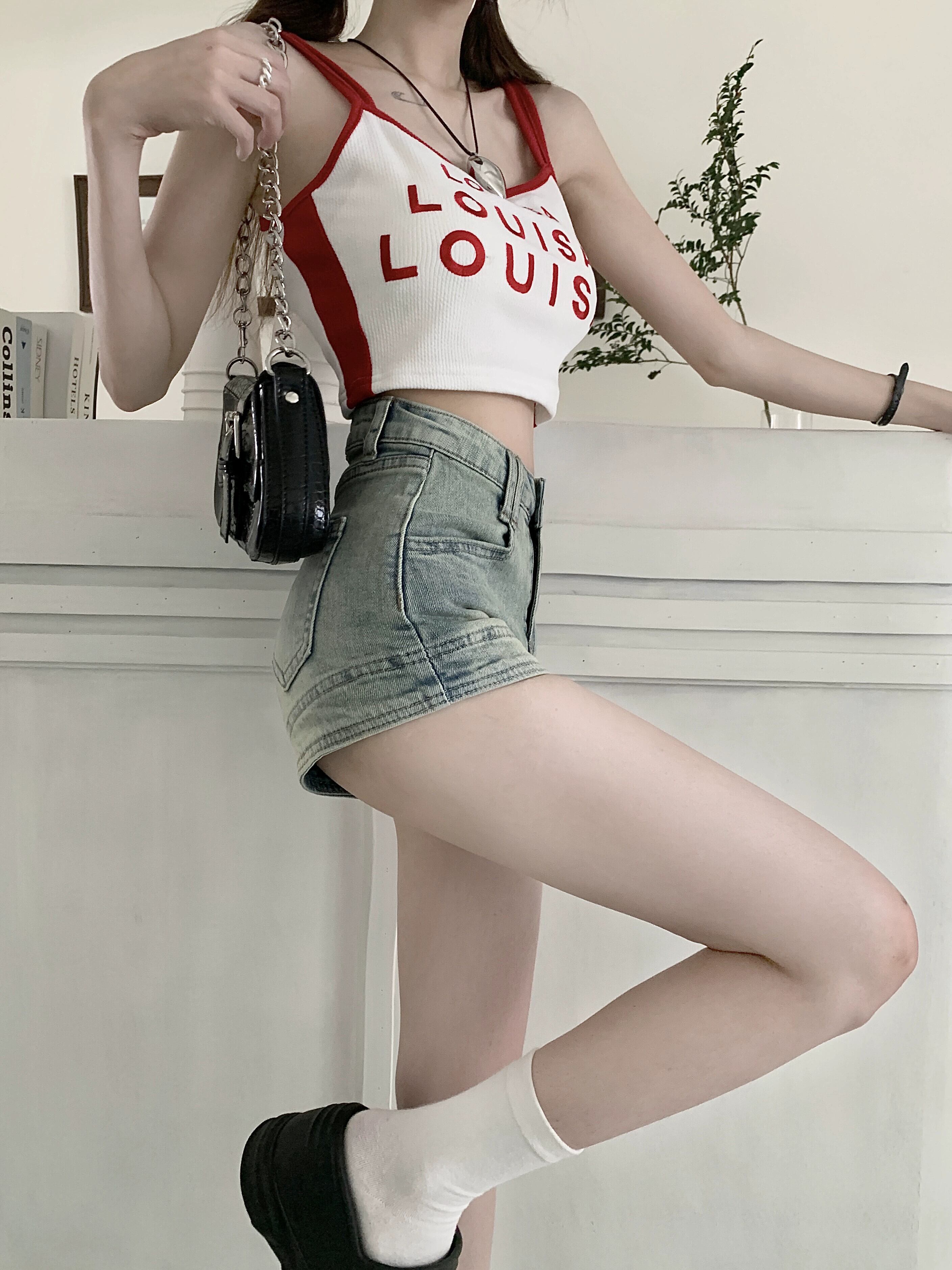 レトロ古風ブルーデニムショートパンツレディース夏ハイウエストスリムバッグヒップパンツ小さいストレートワイドレッグパンツ ハイウェスト サマー 夏物 ショーツ ブルマー ワイドパンツ 0921929701197931