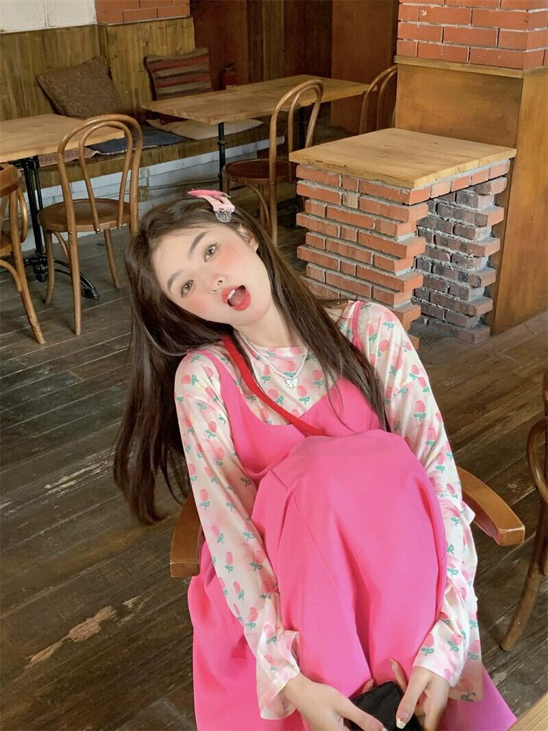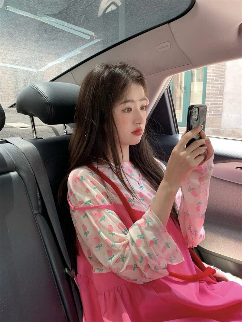 色:花の日焼け止め服,ローズレッドのサスペンダースカート