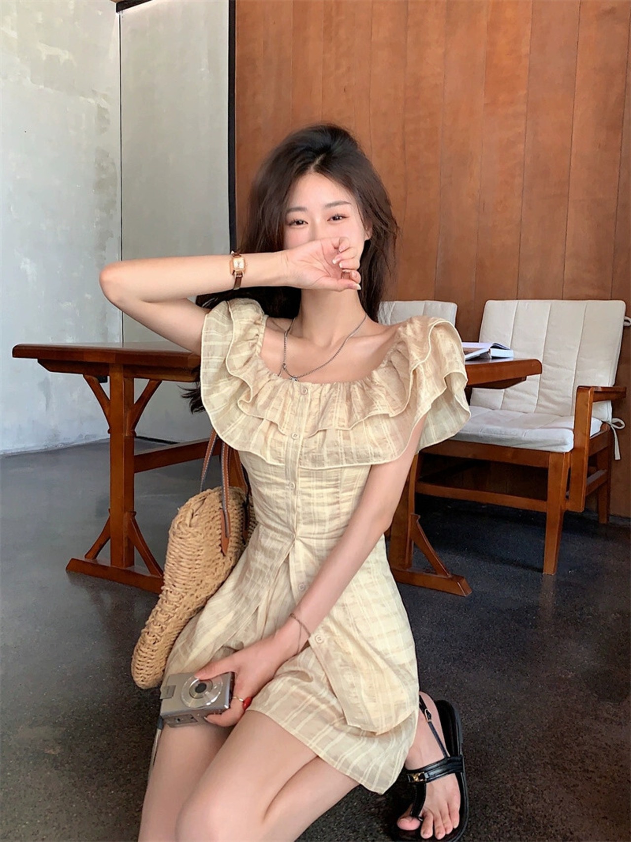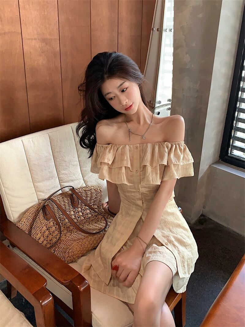 ファッションスーツ女性の夏 2023 新しいワンショルダーフリルシャツハイウエスト弾性ショーツ 2 点セット ハイウェスト エラスティック 伸縮 サマー 夏物 ブルマー 0921922788253556
