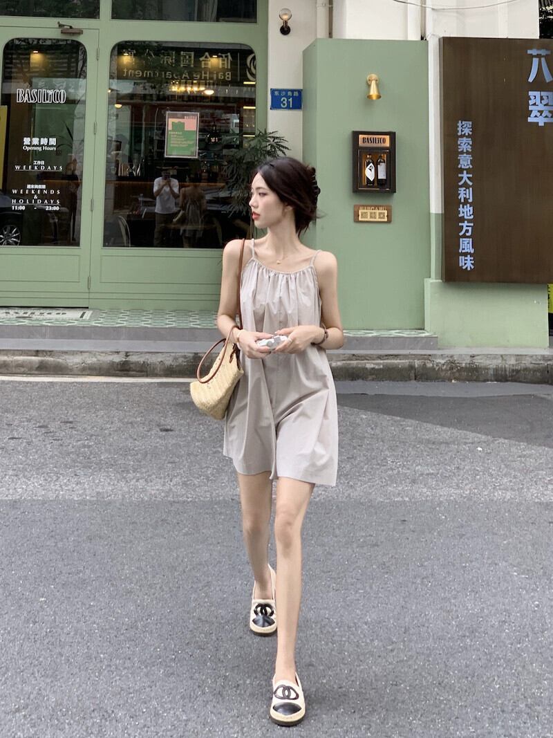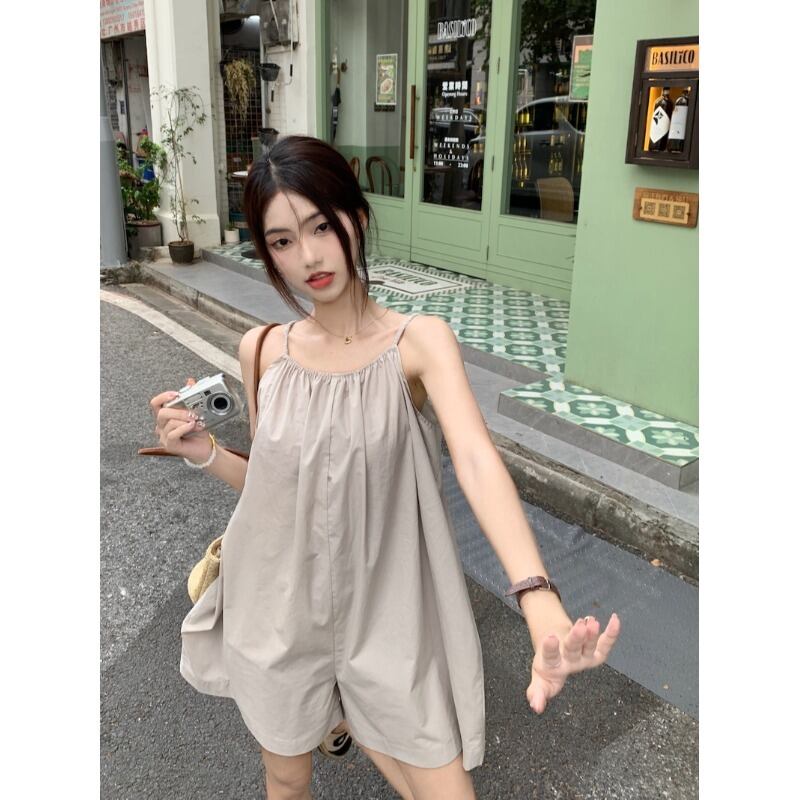 フランスの気質バックレスネクタイジャンプスーツ女性の夏の 2023 新しいファッションルーズスリムワイドレッグカジュアルショーツ サマー 夏物 ブルマー 0921997030838886