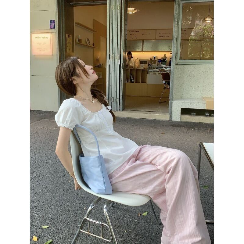 小さくて優しいスタイルのスクエアカラー半袖シャツレディース 2023 夏の新作ショートスリムスリムシャツ サマー 夏物 スクウェア 092197164456365