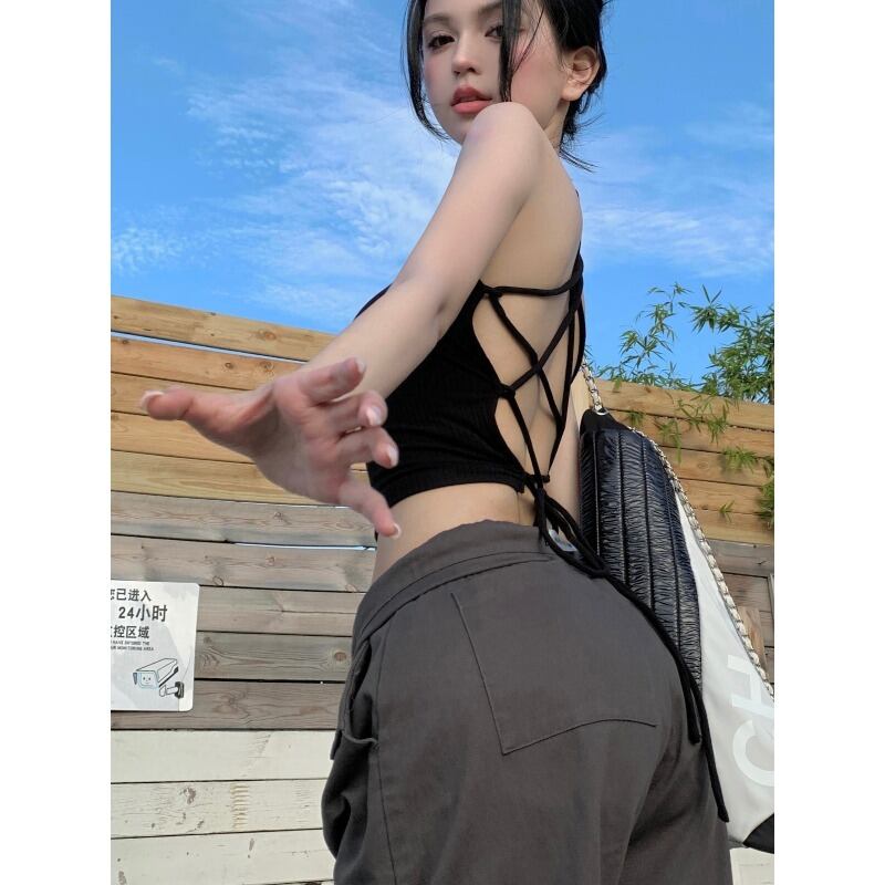 スパイススタイル無地バックレスストラップベスト婦人服2023夏新デザインセンススリムスリムキャミソールトップ サマー 夏物 ソリッドカラー 0921921975938381