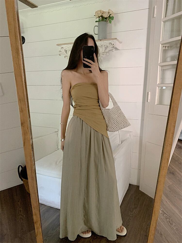 ホットチューブトップベスト女性の夏の純粋な欲望不規則なストラップレスデザインセンスニッチショートラップチェストトップアウターウェア サマー 夏物 ピュア 0921934382828065