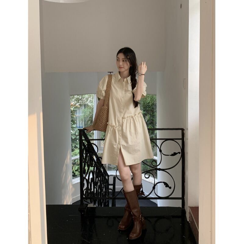小さな不規則なパフスリーブドレスの女性の夏 2023 多用途ルーズスリムシャツショートスカート サマー 夏物 0921975283280273