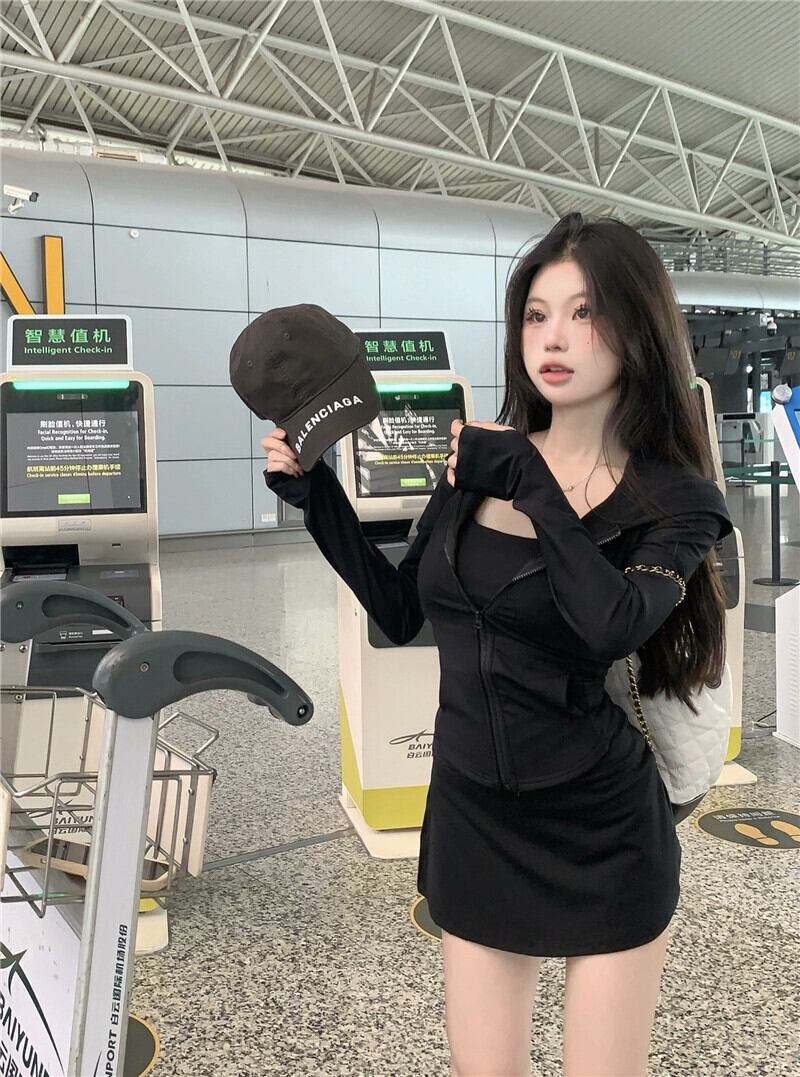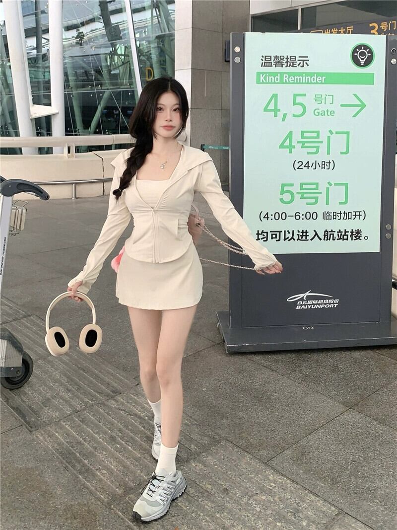 Sweet Spice Girls スーツ スポーツ フード付き 日焼け止め ジャケット スリム ベスト サマー スカート 3 点セット 大人ガーリー スウィート キュート カジュアル 夏物 0921952646304647