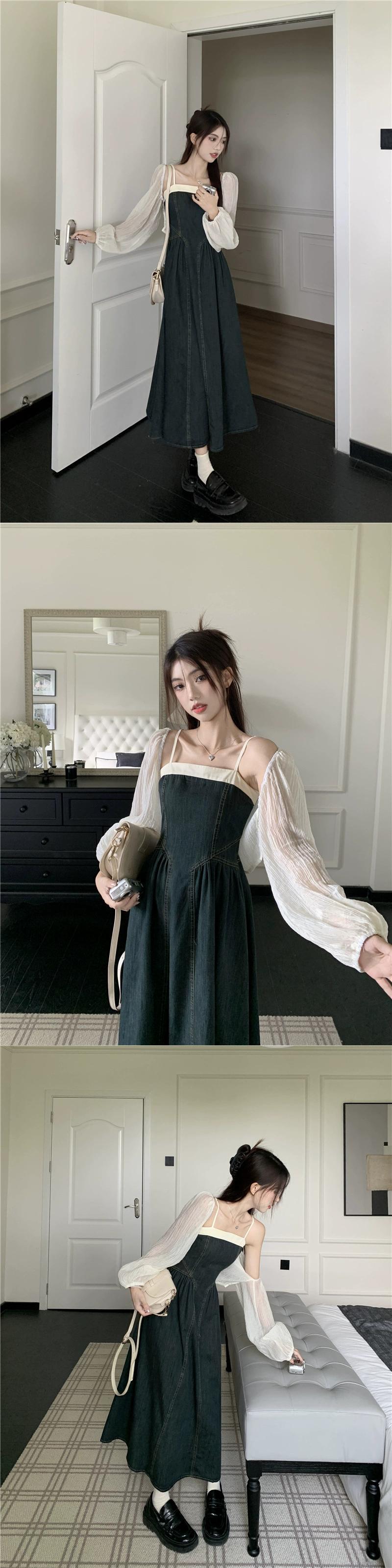 レトロシックなデニムサスペンダードレス女性の夏のハイウエストセクシーなチューブトップドレスとウエストaラインスカート ハイウェスト サマー 夏物 0921985966178220