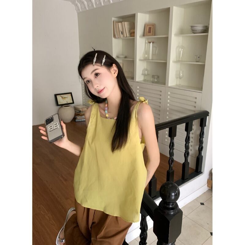 ニッチデザインセンスストラップレスノースリーブキャミソールレディース2023年夏新作オールマッチゆったり薄手アウタートップス サマー 夏物 0921992108041738