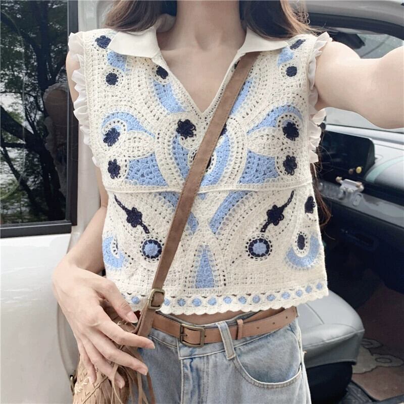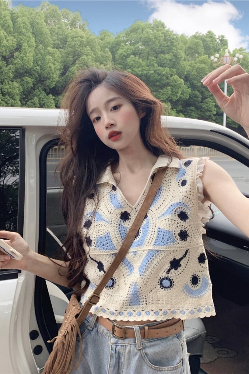 フレンチレトロ中空ラペルベストベスト女性の夏の 2023 新しいショートセクションスリムスリムノースリーブベストトレンド サマー 夏物 0921914372423745