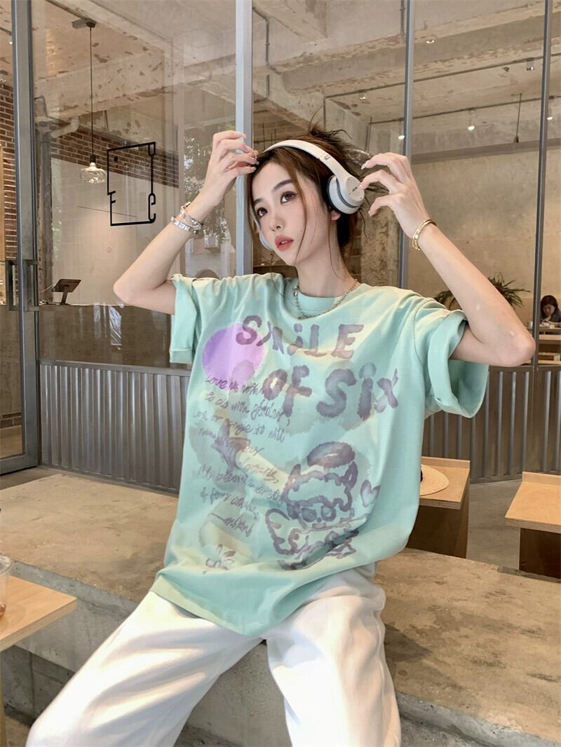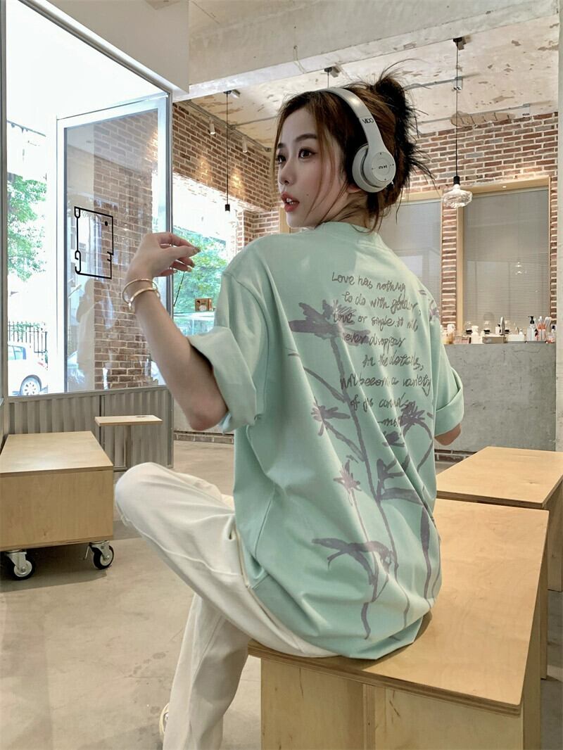 スタイルインスタイルレタープリント半袖Tシャツレディース2023年夏新作ゆったり薄手オールマッチプルオーバートップ サマー 夏物 0921940180213793