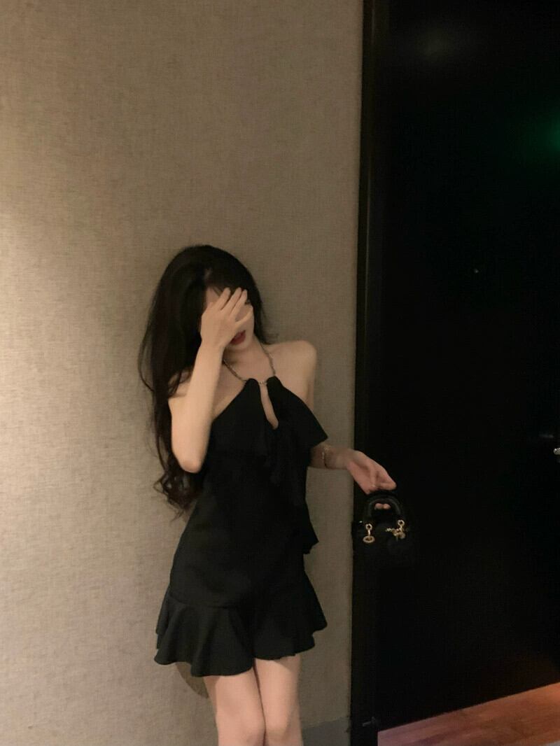 セクシーな黒の吊りネックサスペンダードレス女性の夏 2023 新しい気質スリムスリムショートスカート ブラック サマー 夏物 092198532910870