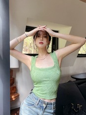 センス U ネックジャカードニットキャミソール女性の夏スリムショートインオールマッチアウターウェアトップ サマー 夏物 092197648932897