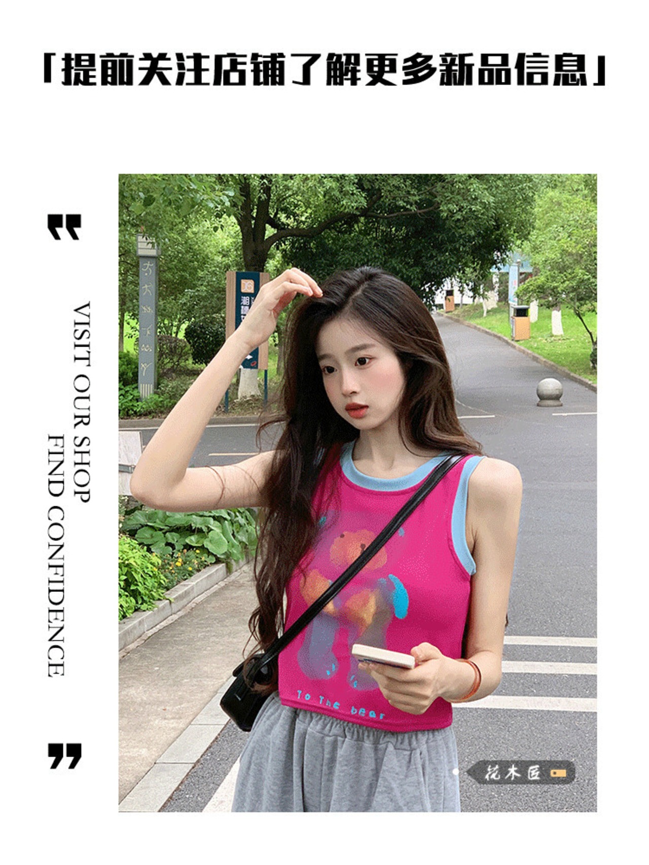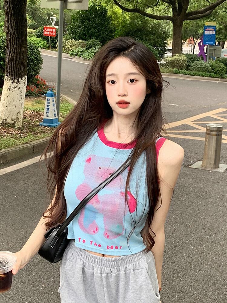 ドーパミンウェアスリムフィットカラーベアベストキャミソールレディース夏アウターオールマッチショートボトムトップ サマー 夏物 0921951471438519
