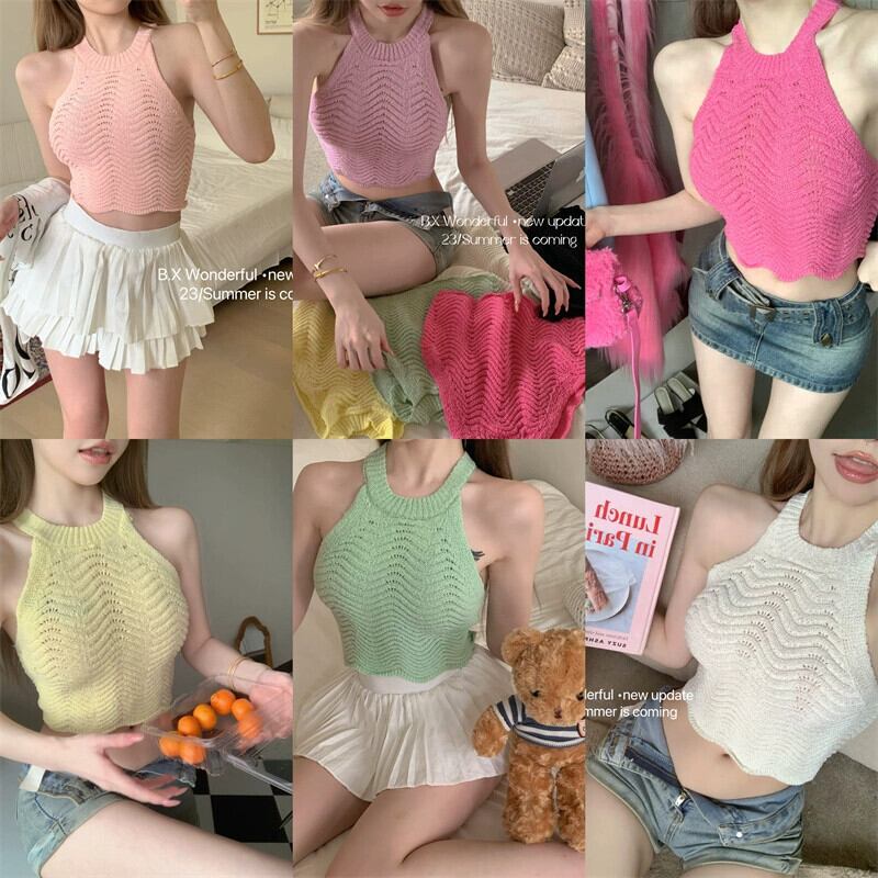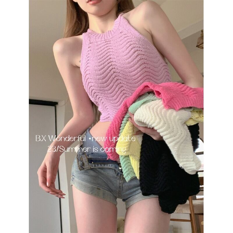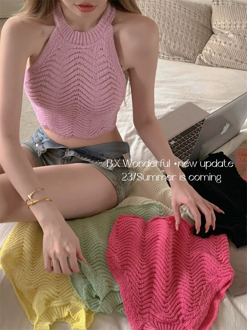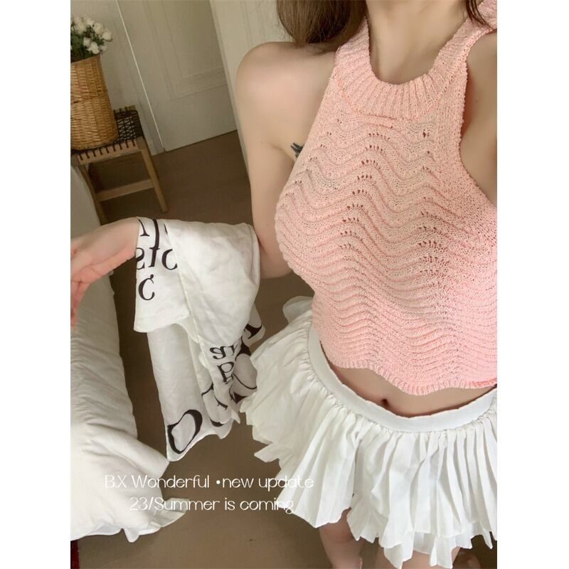 スパイスガールズニットネックキャミソール婦人服夏 2023 気質ショートセクションスリムスリムノースリーブトップ サマー 夏物 0921961428613971