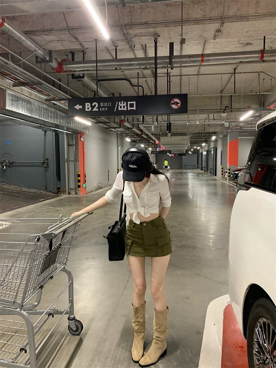 色:ブラックトップ,ホワイトトップ,アーミーグリーンのスカート