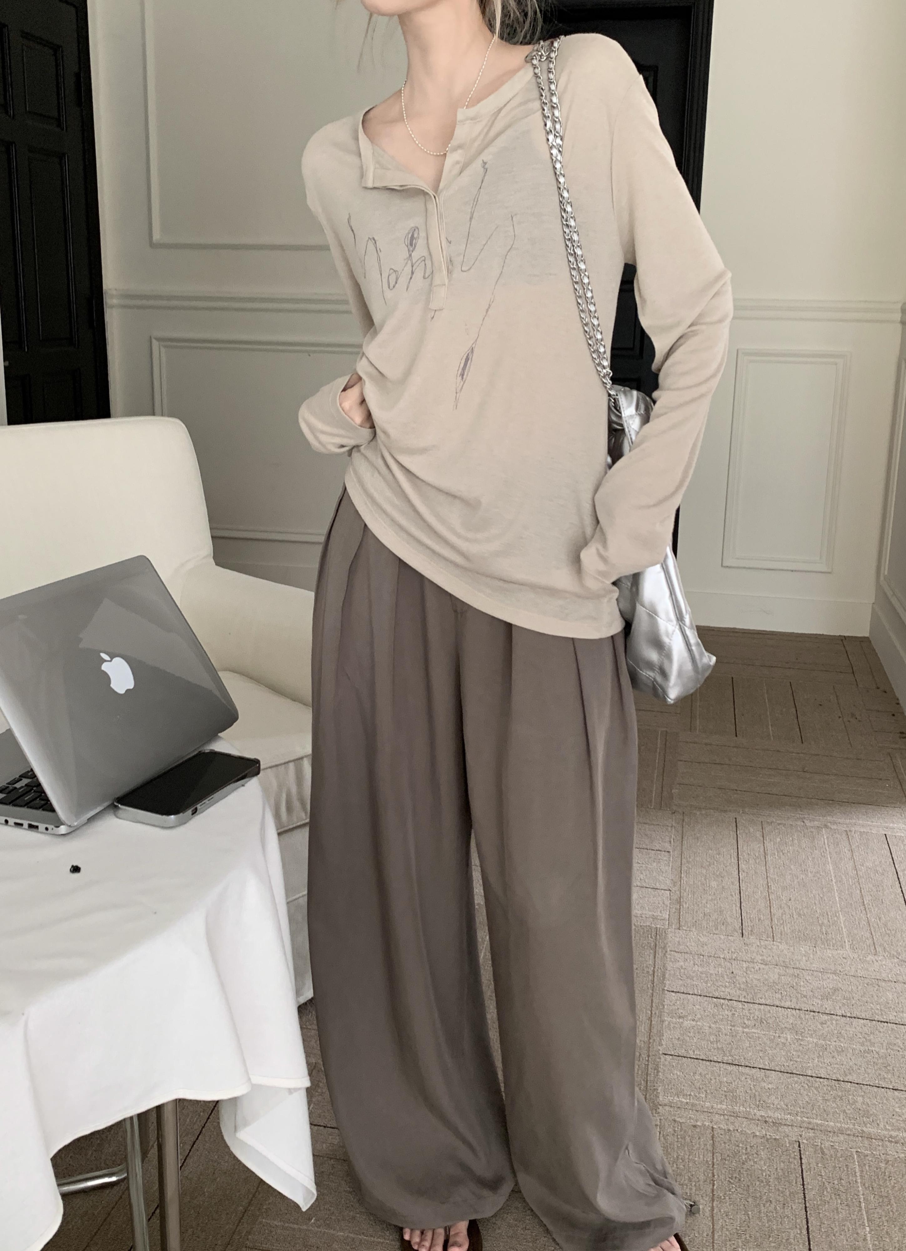 アメリカンプリントハーフオープンカラー長袖Tシャツ婦人服デザインセンスニッチ夏薄部ルーズ日焼け止めブラウストップ ロング サマー 夏物 092192845668799