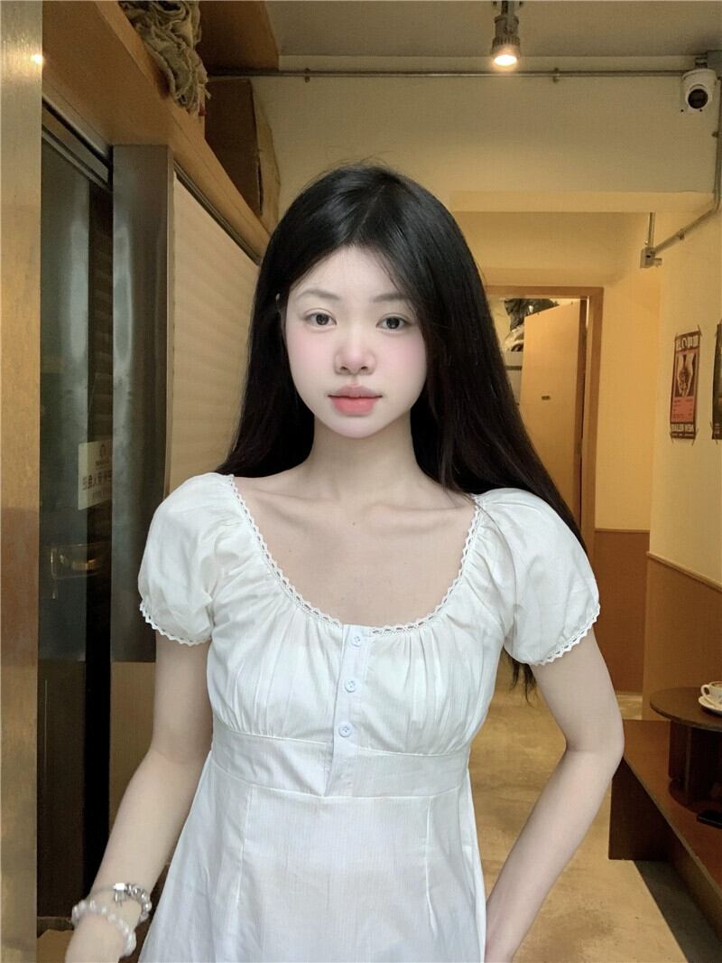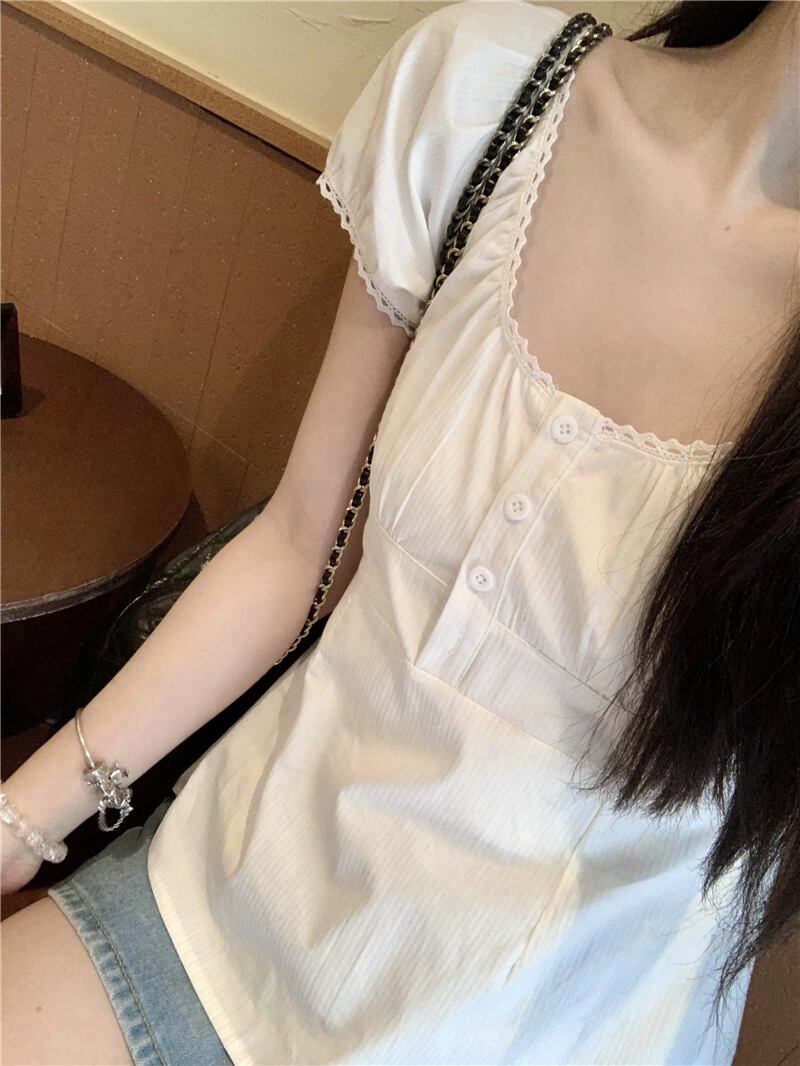 バージョンの優しい風レース白シャツ女性の 2023 年夏新しい気質年齢を減らすバブル半袖スリムトップ ホワイト サマー 夏物 0921926282198118