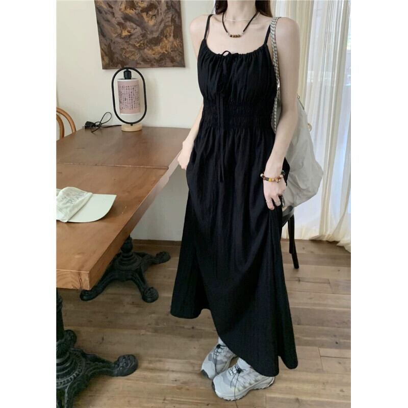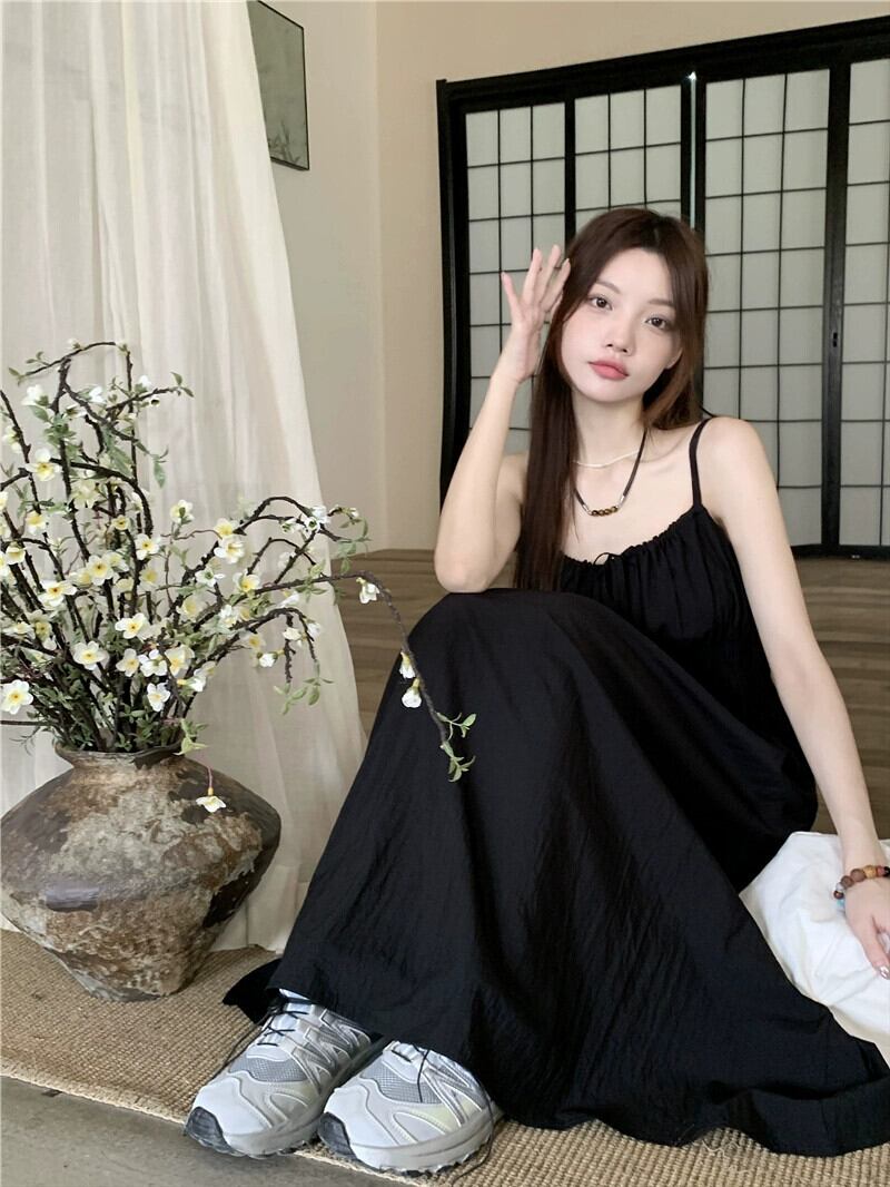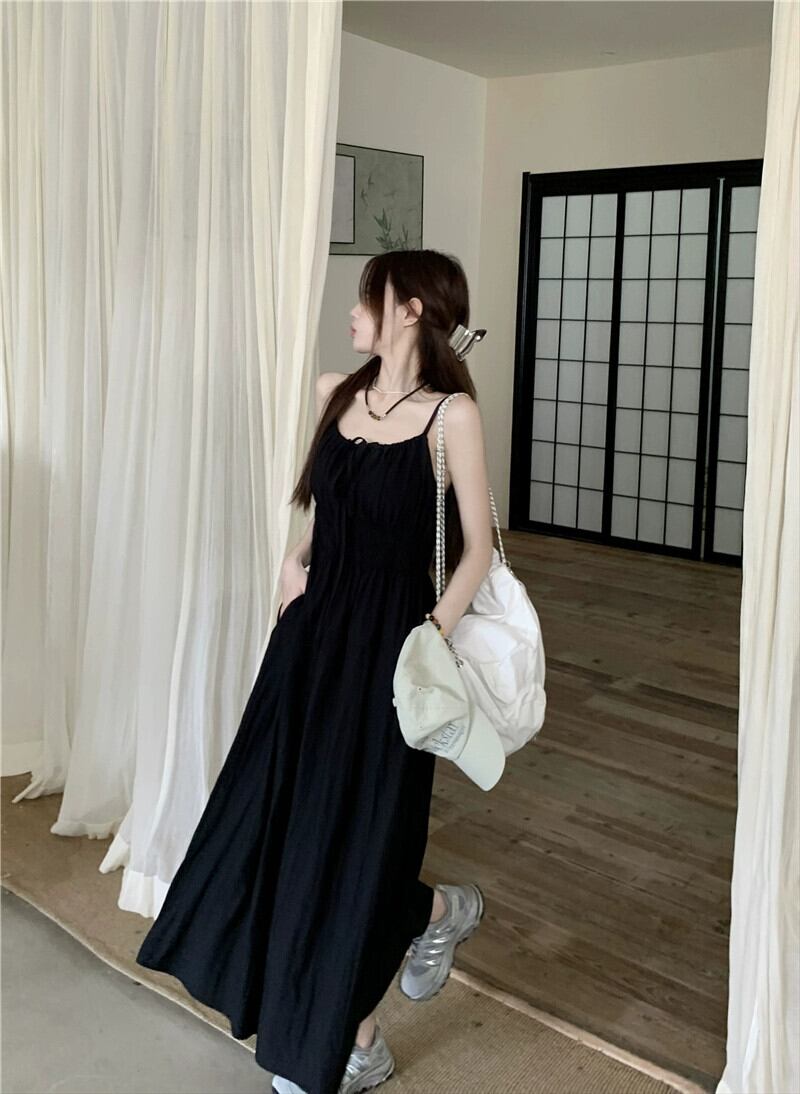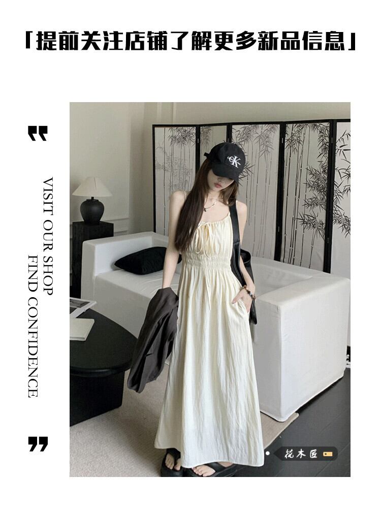 センスネクタイノースリーブサスペンダードレス女性の夏の2023新しい気質スリムスリムミドル丈スカート サマー 夏物 0921945533973624
